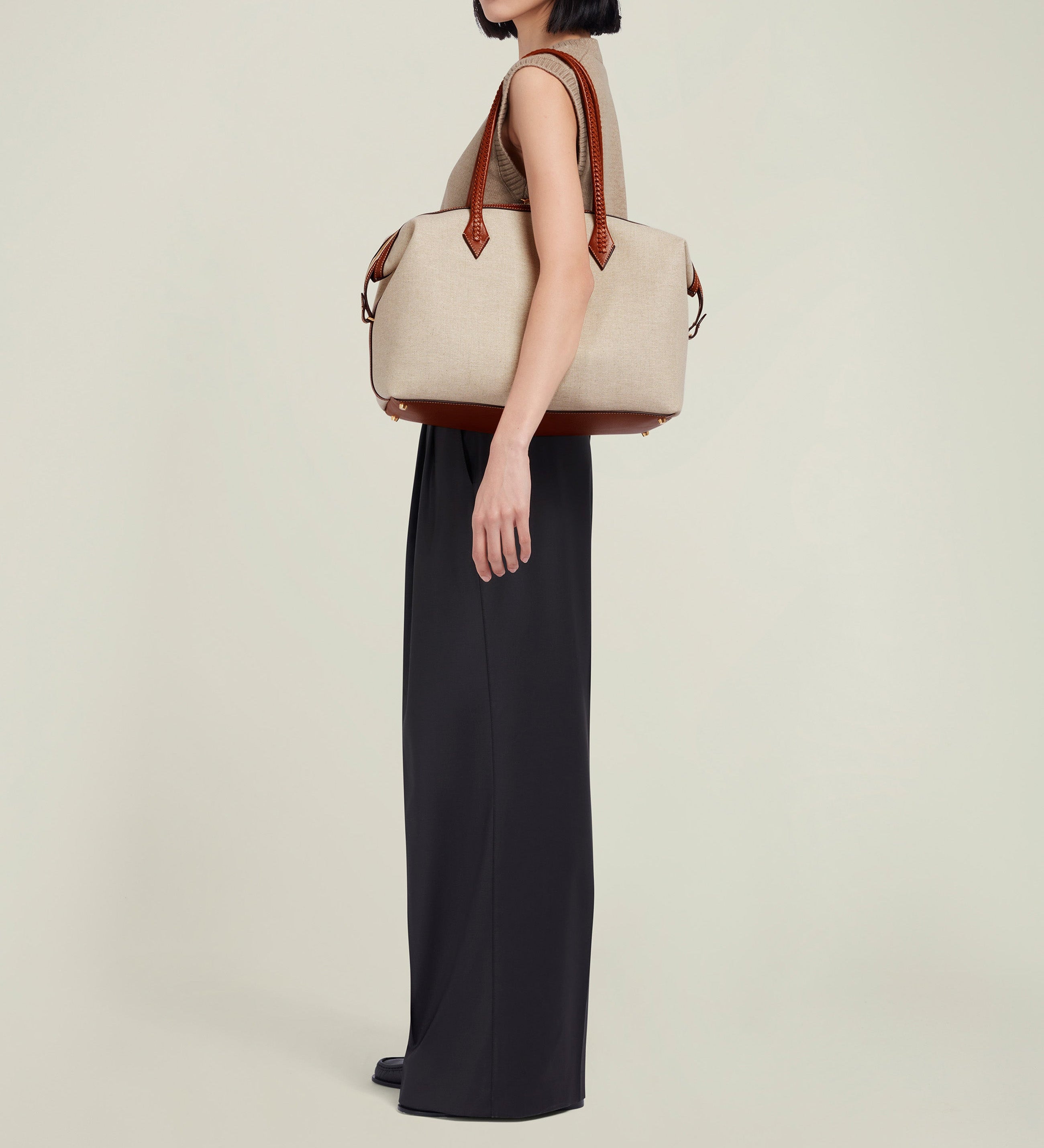 Métier - Roma Shoulder Bag Natural Linen and Apple Leather