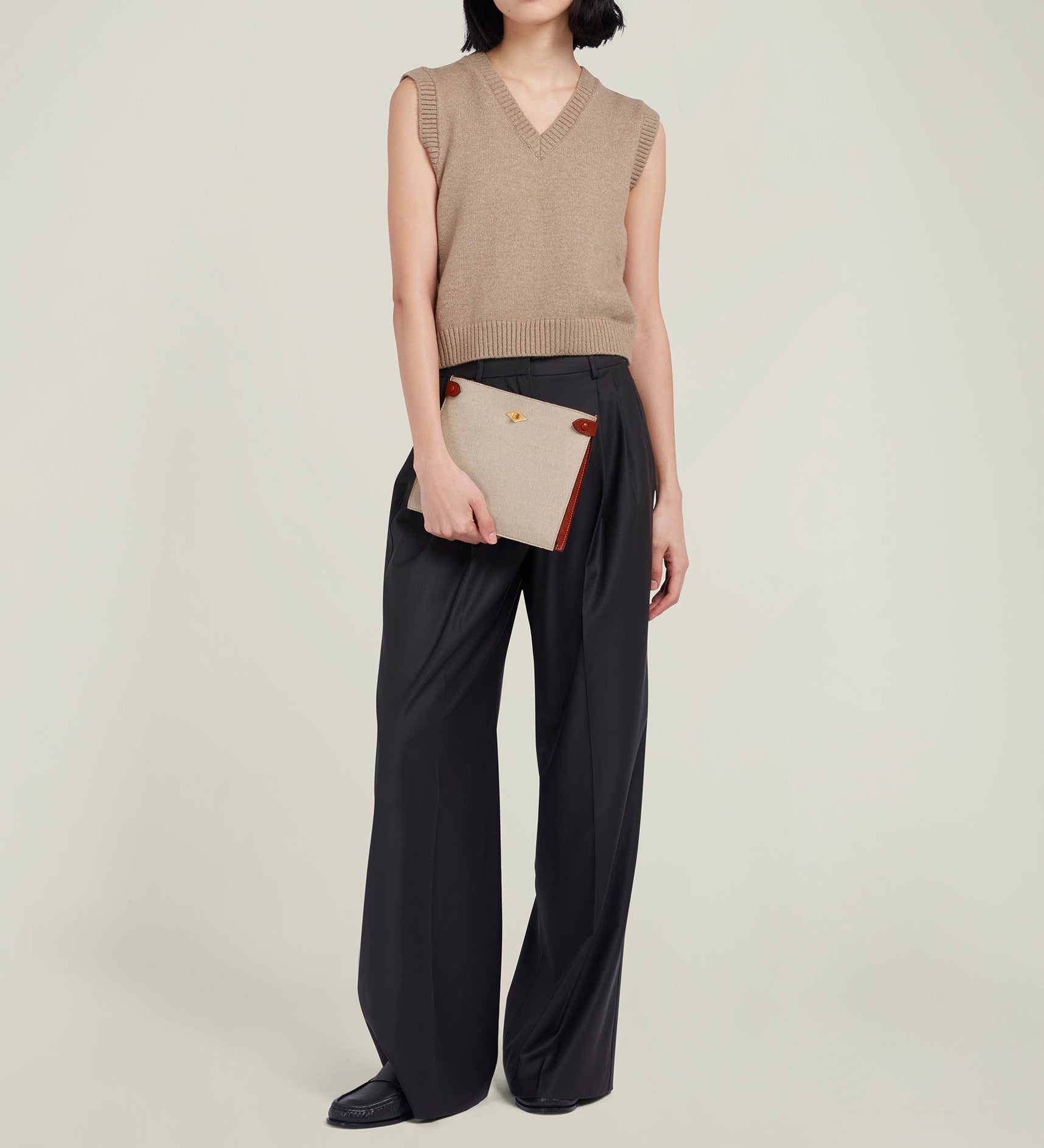 Métier - Roma Mini Clutch Natural Linen and Apple Leather
