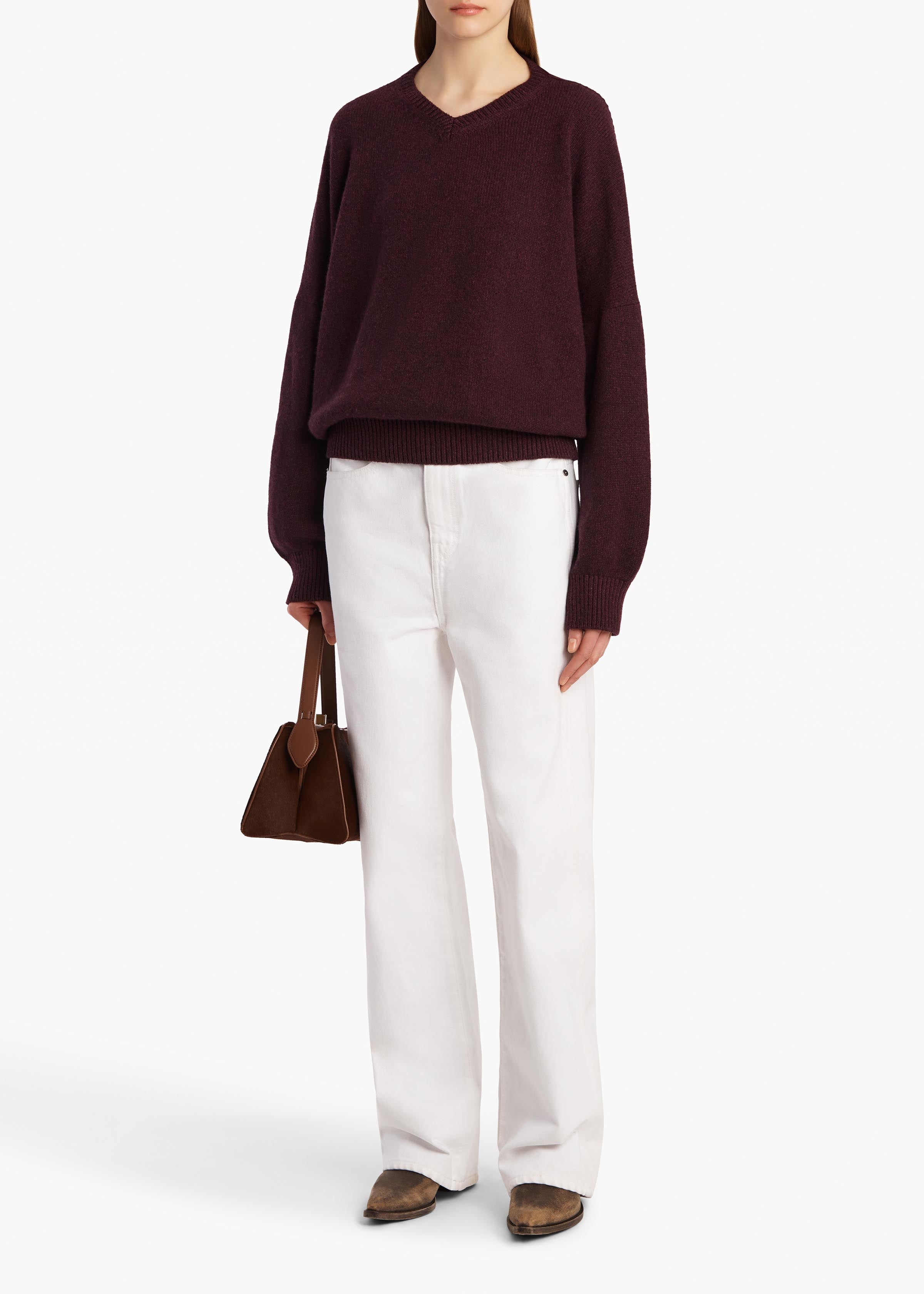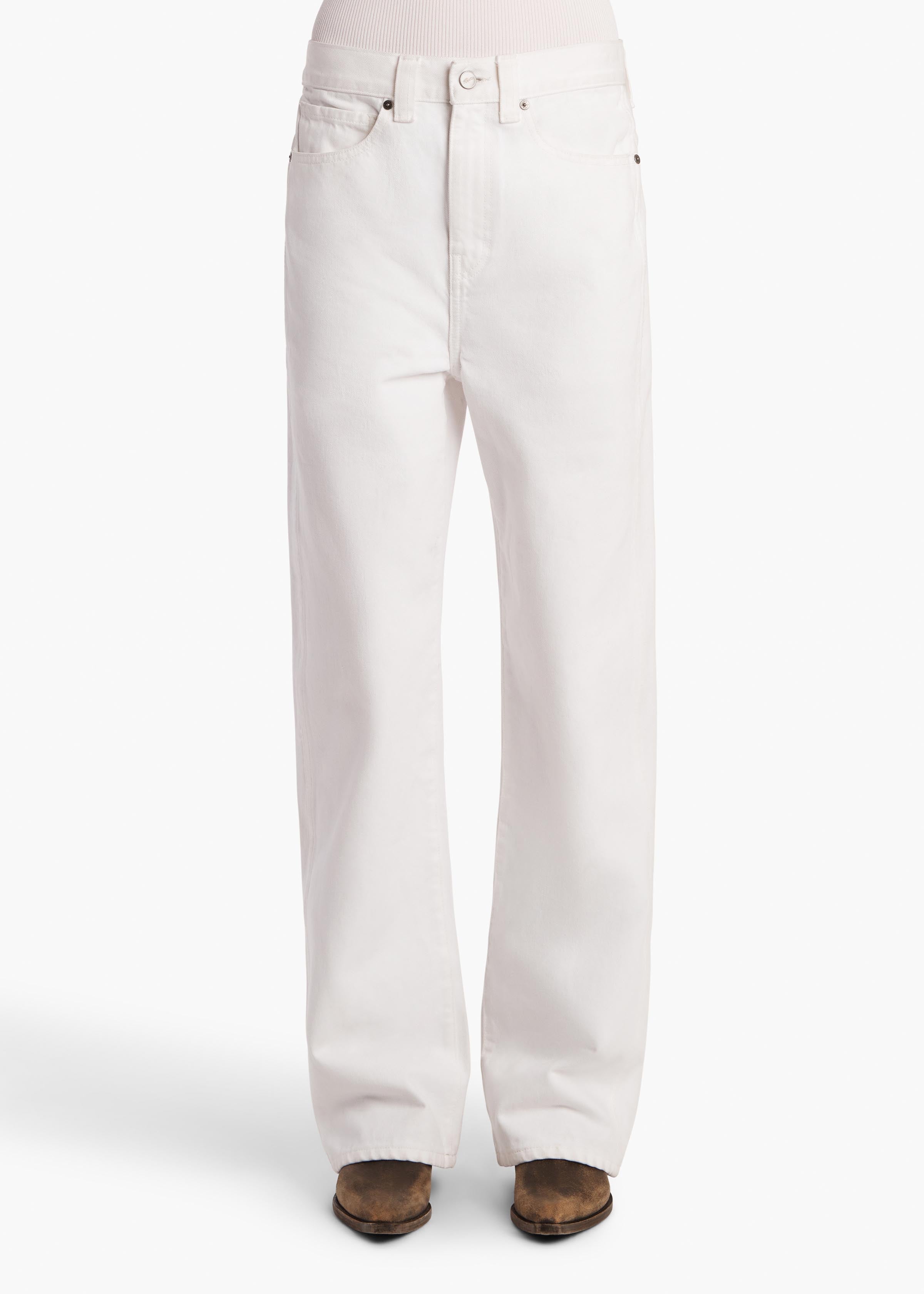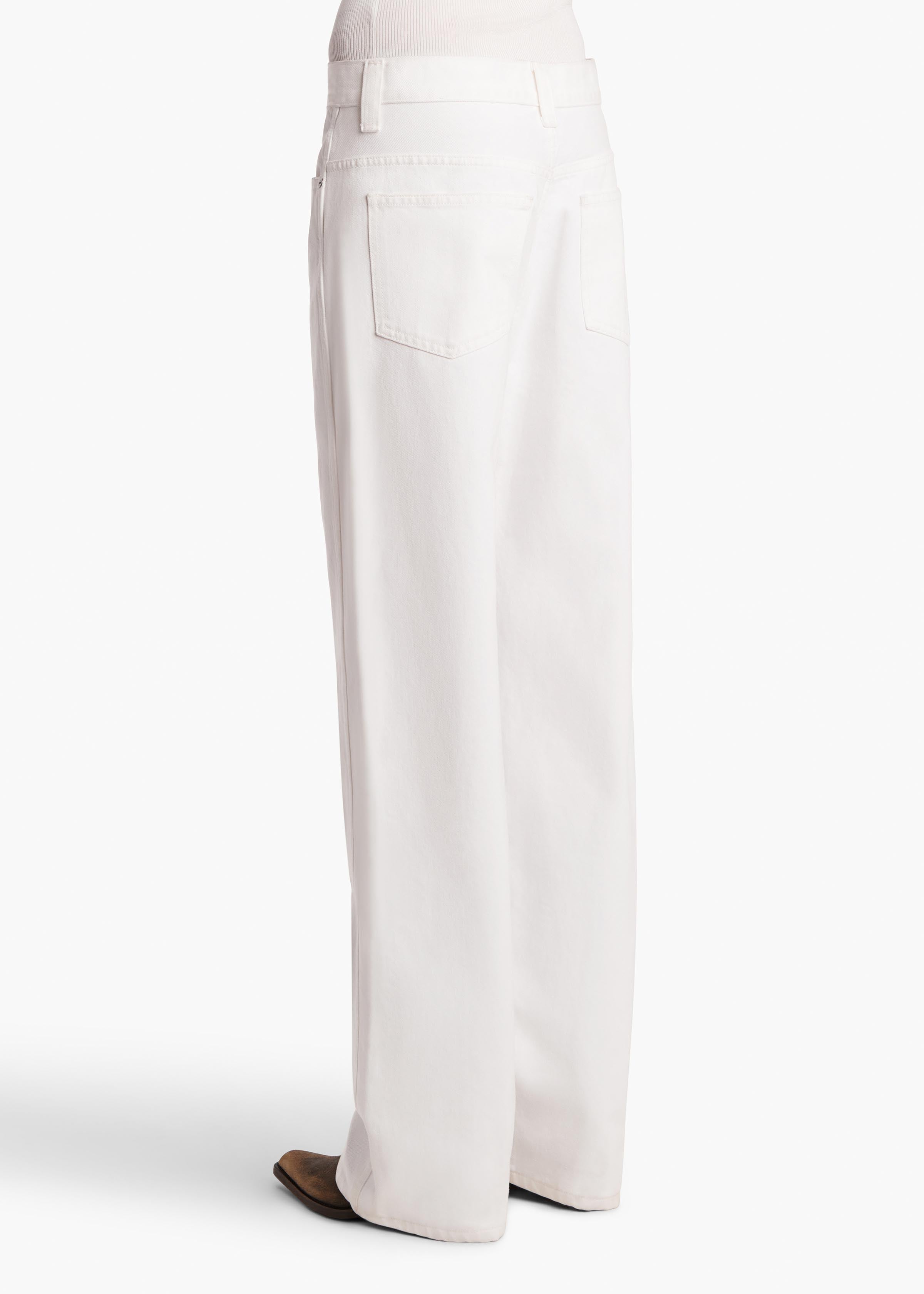 Designed to sit low on the hip, this relaxed silhouette combines classic five-pocket denim detailing with a dropped rise. Finished by hand.