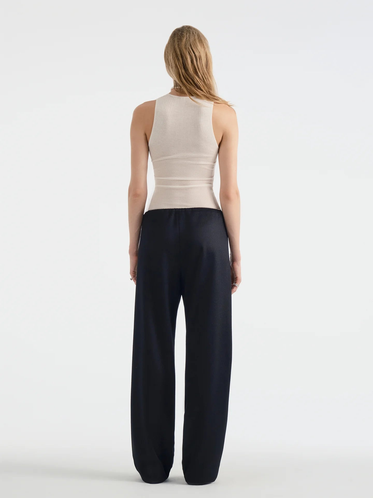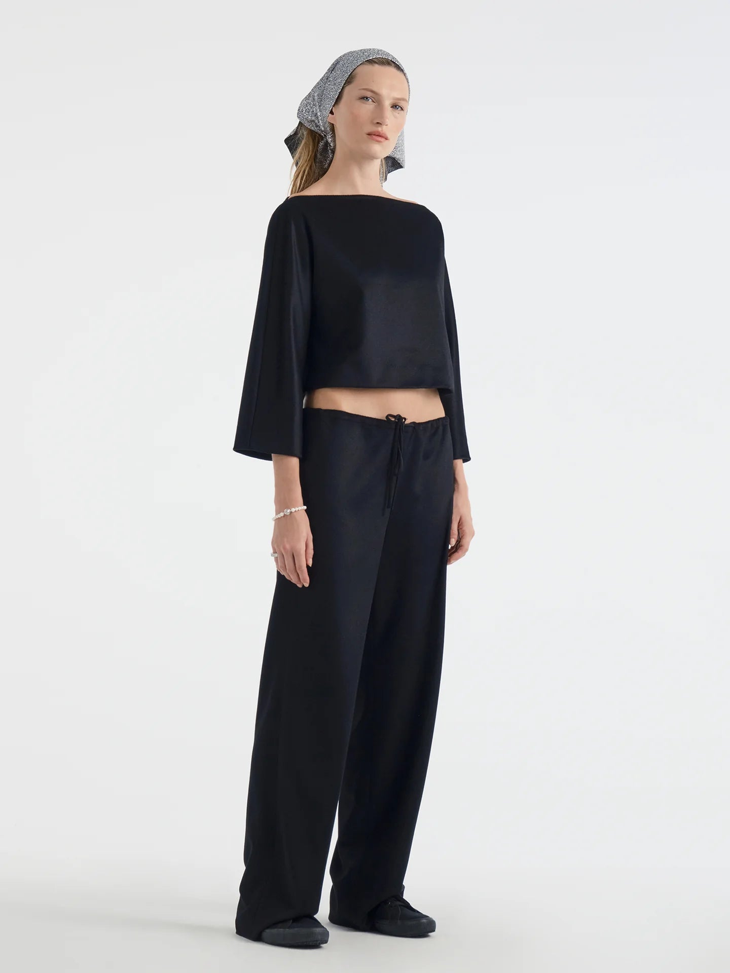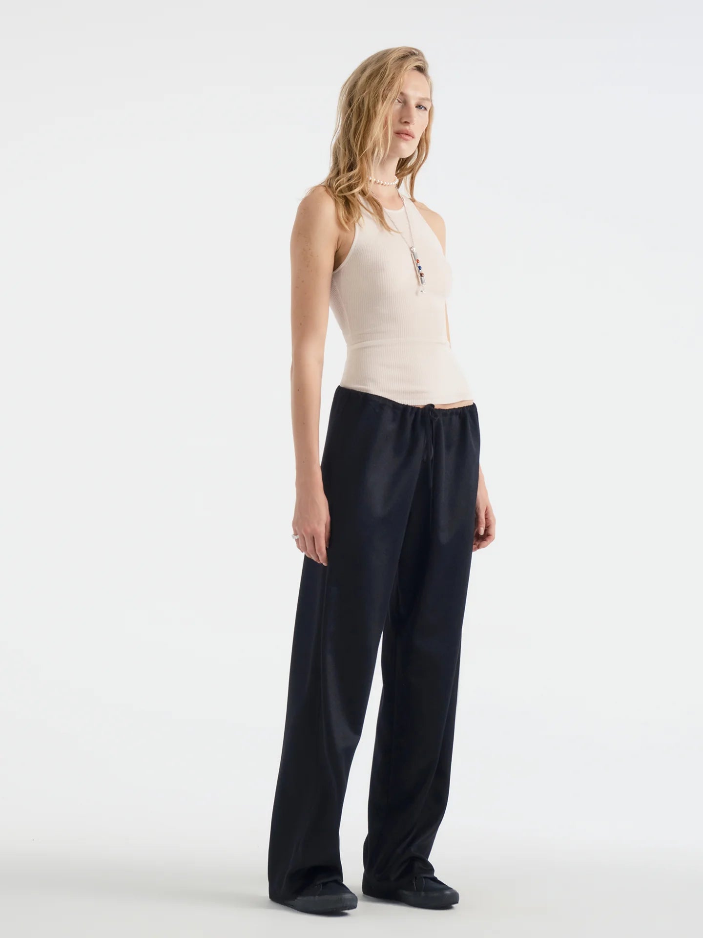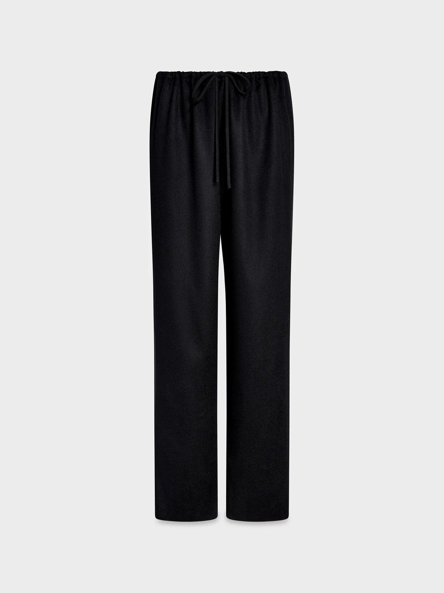This is a relaxed fit, straight leg pant with a drawstring waistband and clean finishings. Made in our Los Angeles atelier from opulent Italian cashmere chinchilla for a super soft hand and fluid drape.