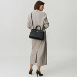 The Midi Hudson is a compact version of our bestselling style designed to empower, crafted to last. Featuring our signature belted strap and gold-plated lock, it's handmade with luxurious artisanal details. Sleek, with plenty of space for essentials, it's an elevated choice for moments on the go. The central leather flap with a magnetic closure keeps belongings secure, while a rear slip pocket provides quick access to essentials. With expandable side panels for extra space when needed, it offers versatility in every moment whether worn handheld, on the crook of the arm, or crossbody with its adjustable strap. Ethically produced from sustainably sourced, LWG gold-rated Italian leather, The Midi Hudson blends timeless style with contemporary refinement.