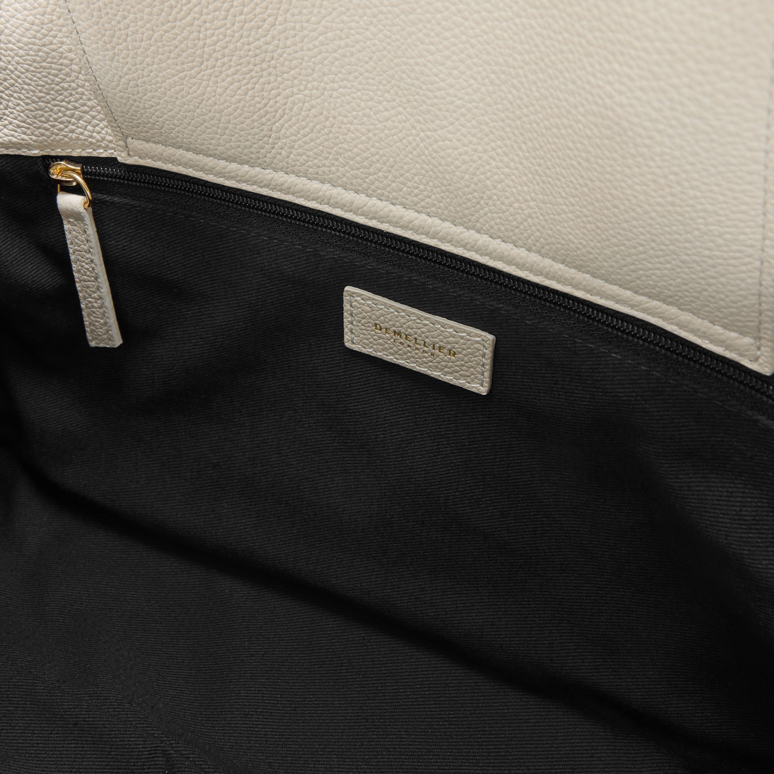 Interior: Main compartment with magnetic closure flap, zip pocket, slip pocket, cotton lining, DeMellier foil logo.