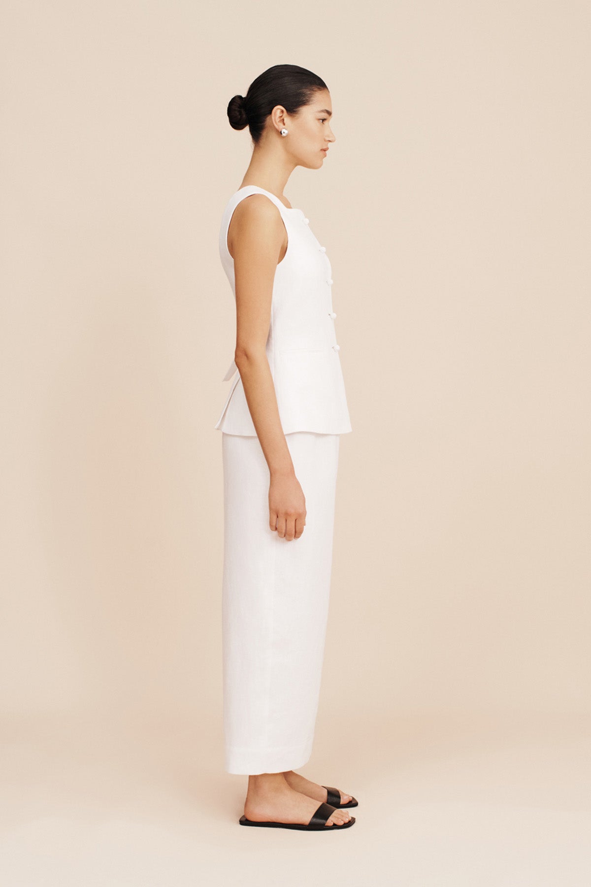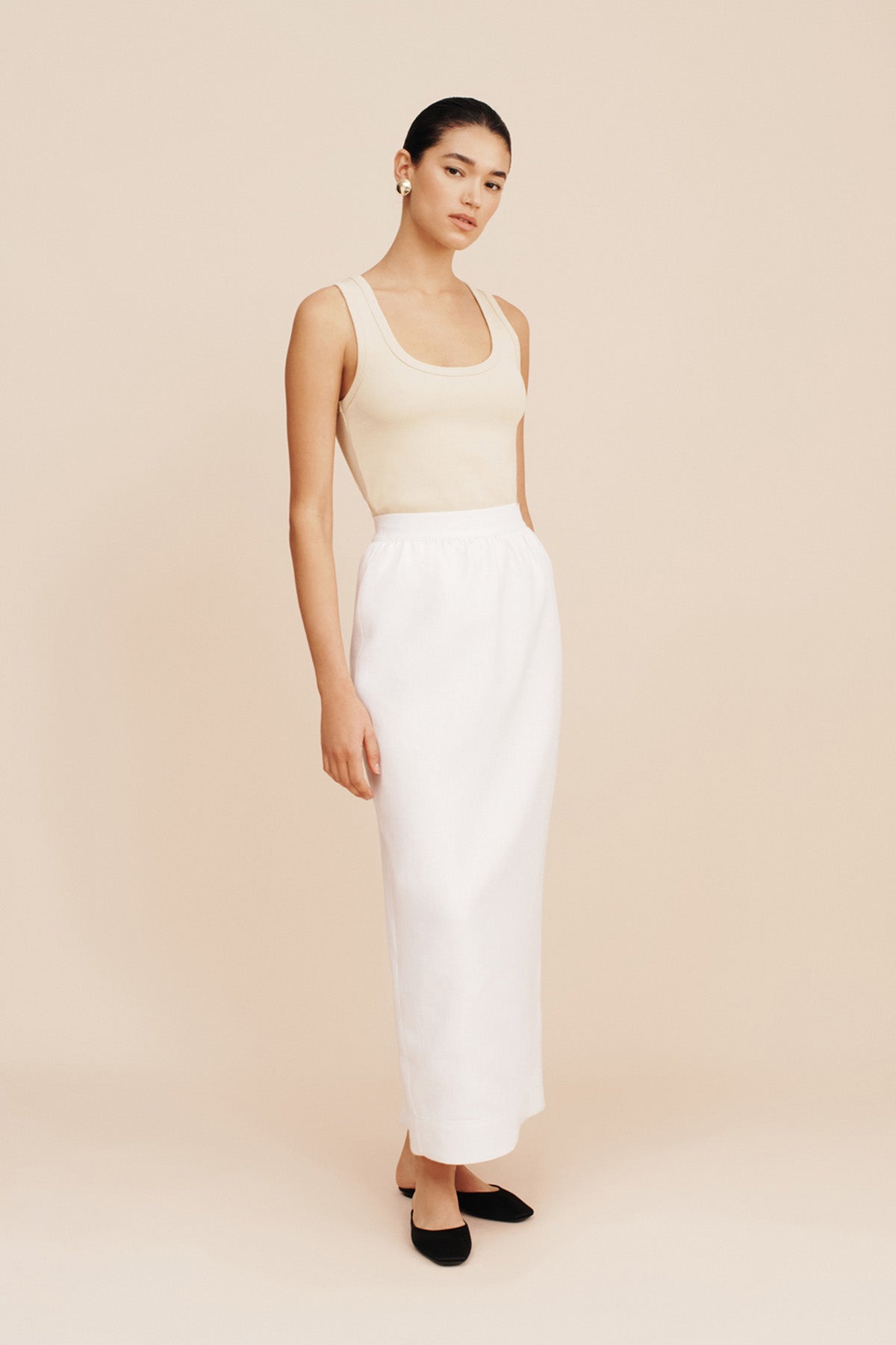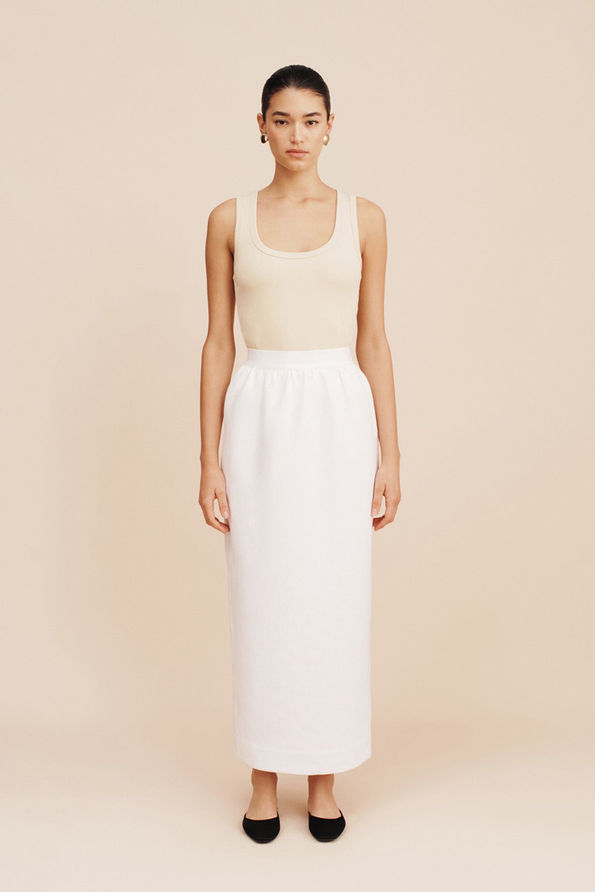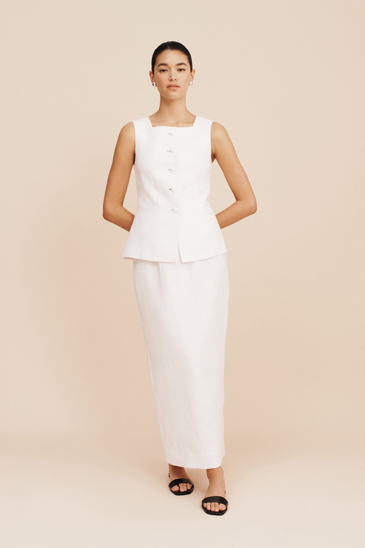 The Bonnie Pencil Skirt is tailored from mid-weight linen in a column silhouette. It has a flexible high-rise waistband, back split for movement and falls to an elegant maxi length. Style yours with the coordinating Rio Vest.