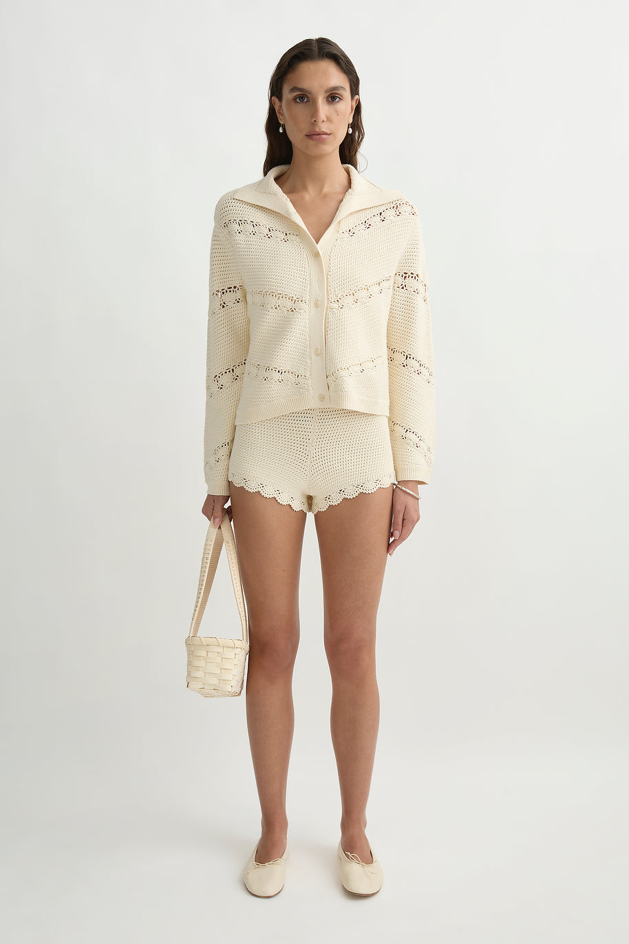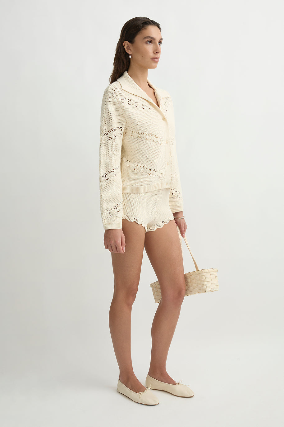 • Textured knit with hand-crocheted detailing