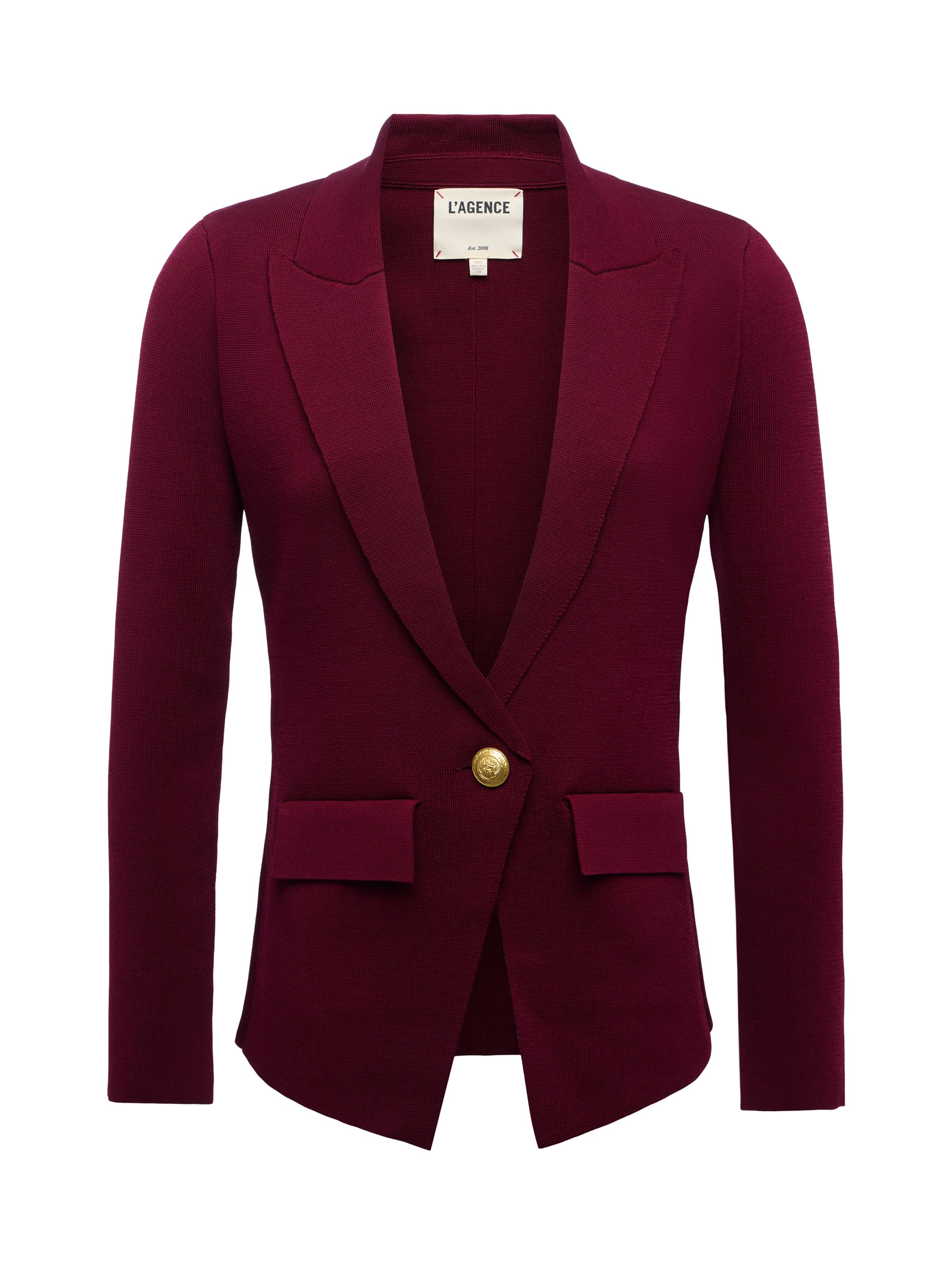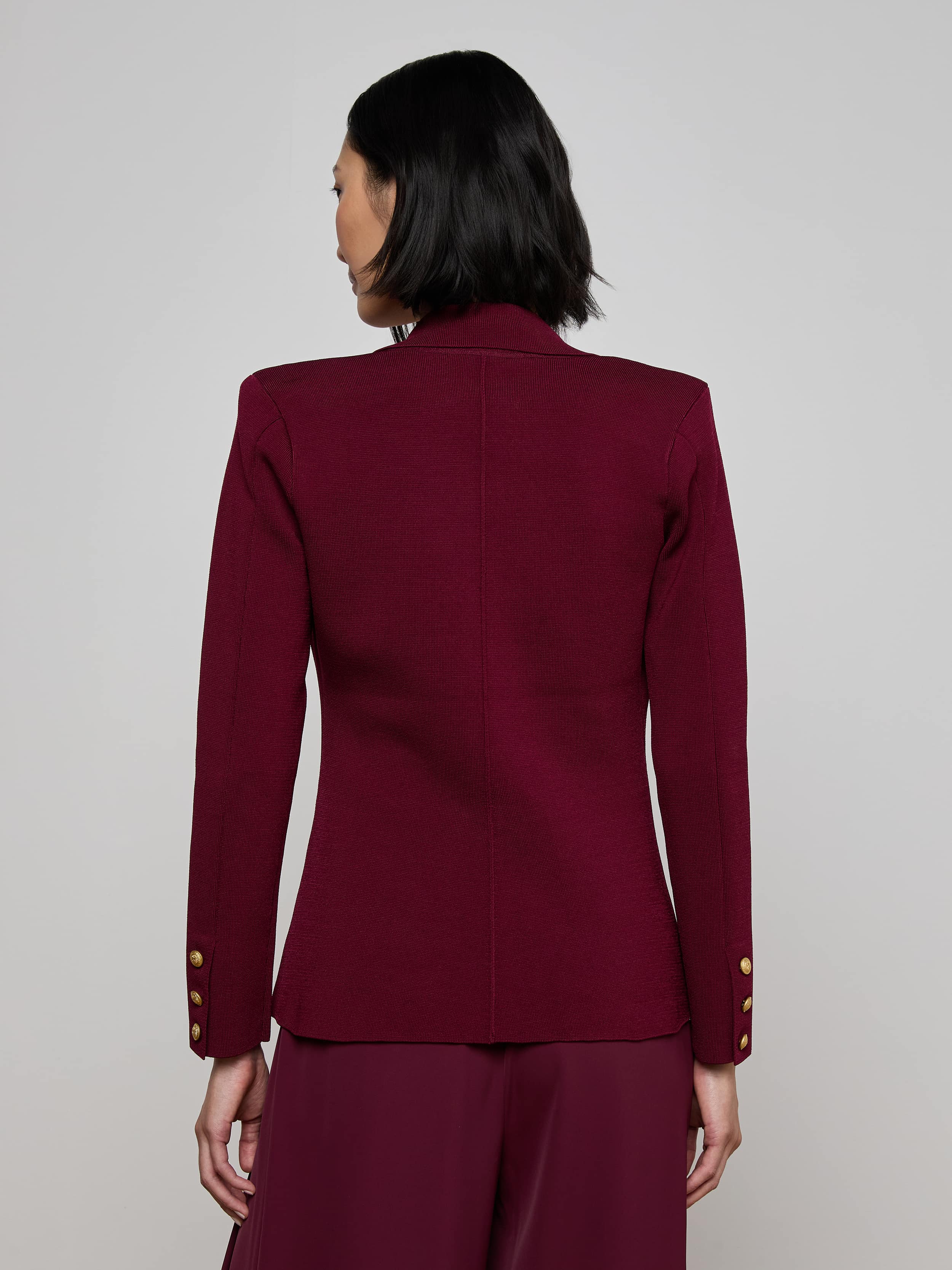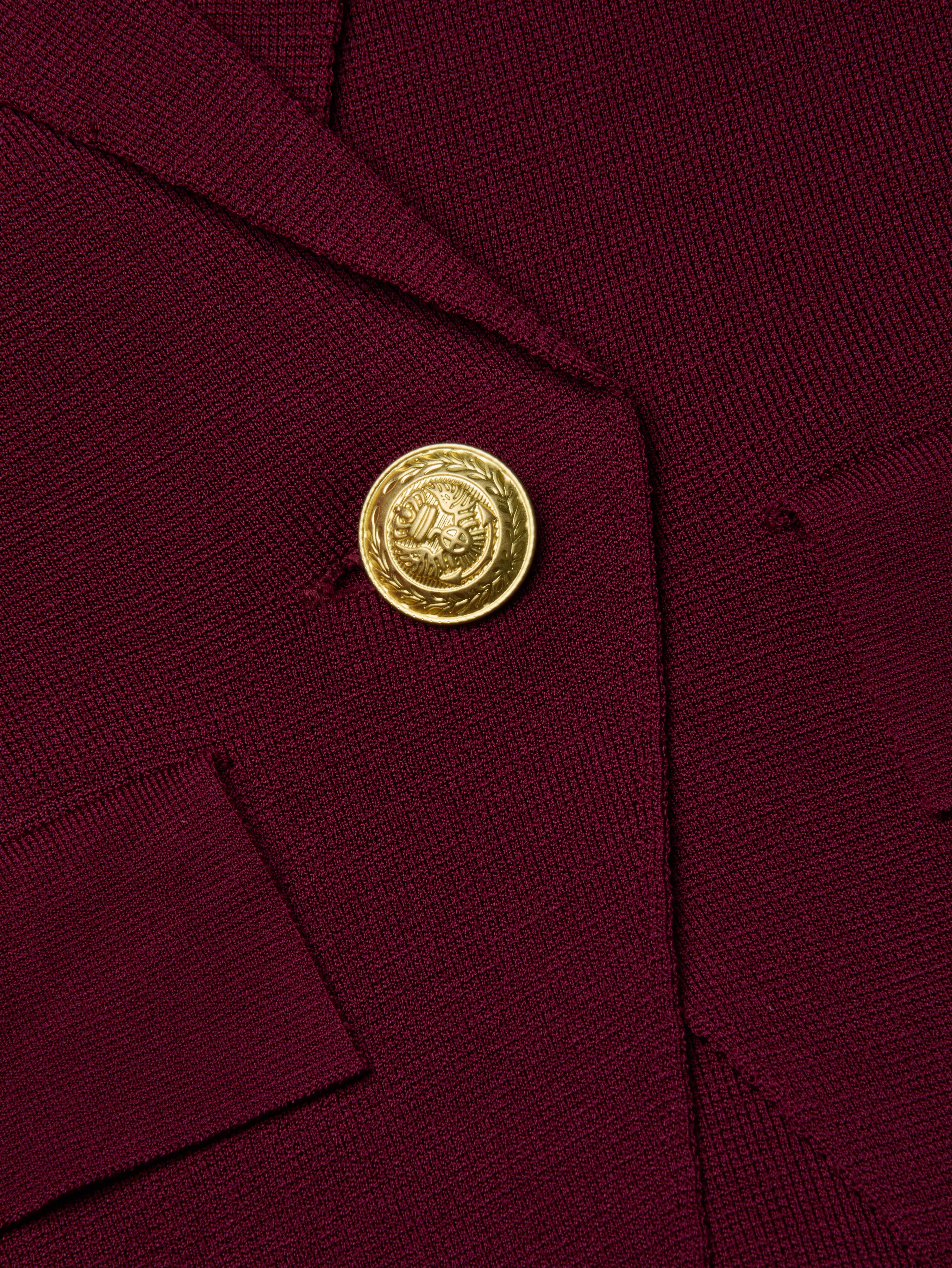 The ultimate single-breasted blazer, now in a rich dark port knit.