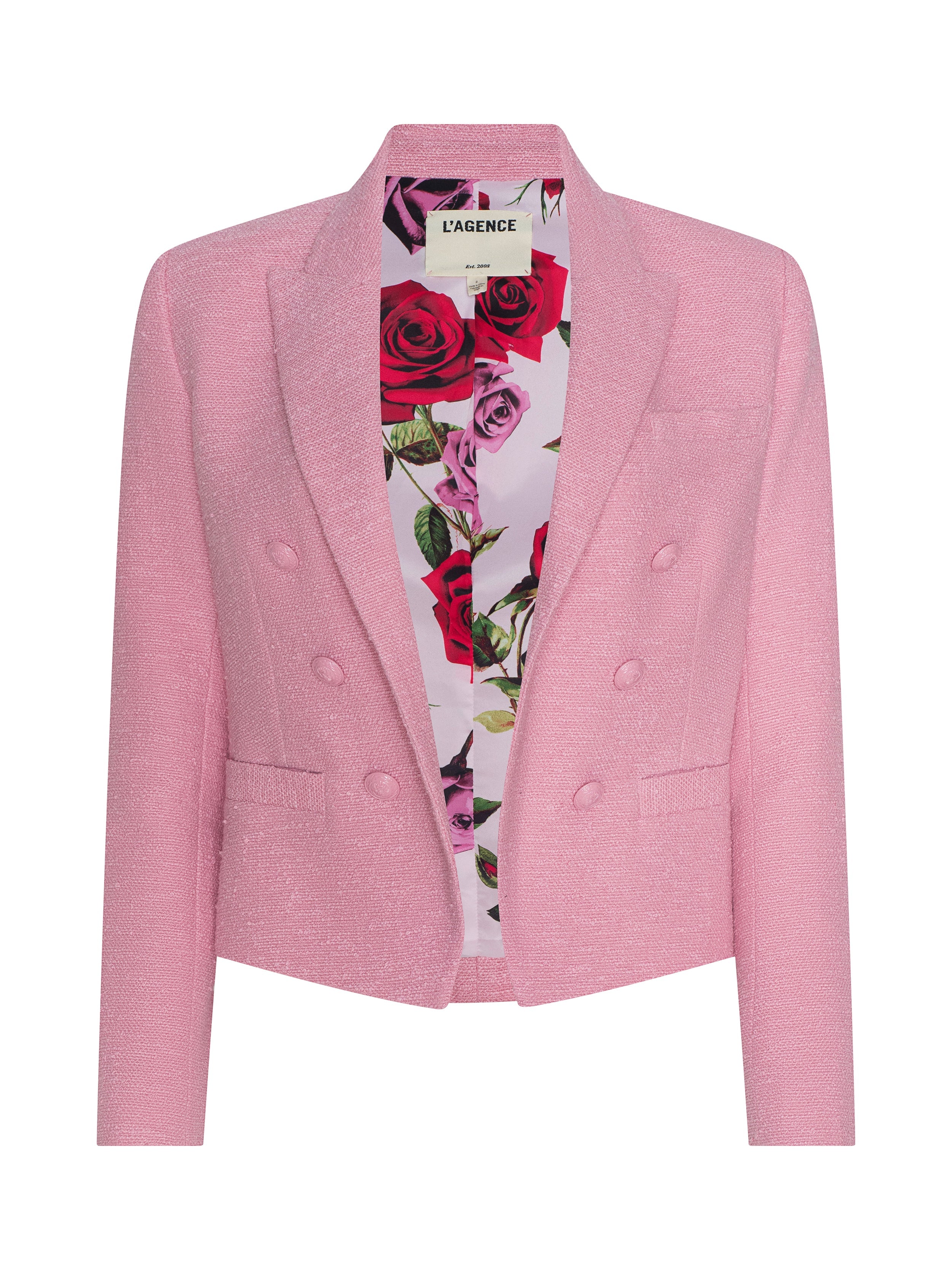 Our bestselling open-front Brooke features a flattering, tapered fit. This sharp, double-breasted blazer is now back in pink, crafted from our cotton-blend tweed. Style with jeans for downtown cool.