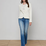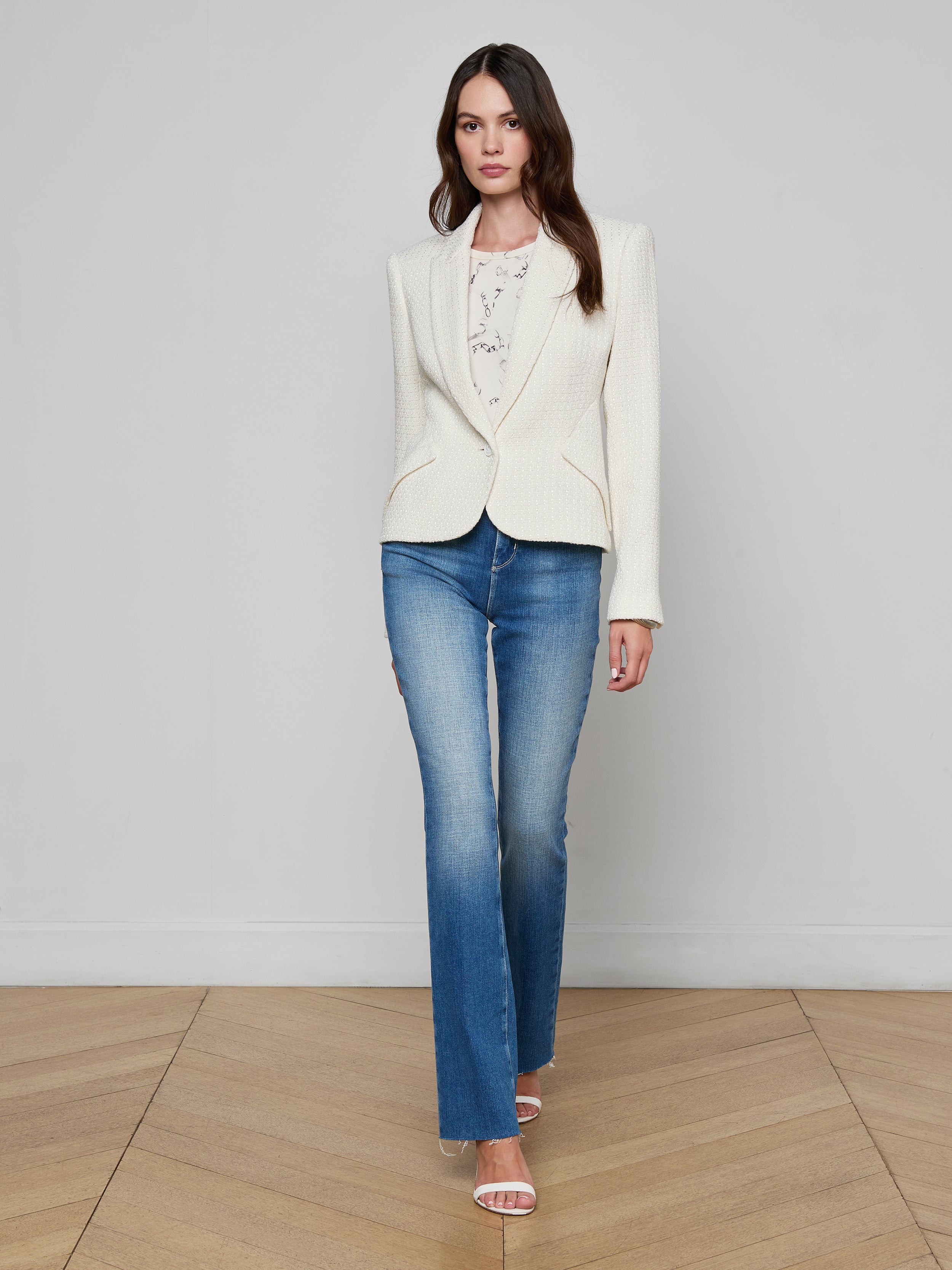 Our classic single-breasted blazer in a slightly shortened length. The Jennah is the perfect choice for petites or for pairing with high-waisted trousers. Now back in a sophisticated ivory tweed.