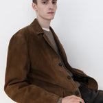 A modern take on the '70s suede blazer. Crafted from rich caramel-colored goat suede.
