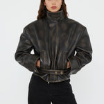 • Leather bomber with distressed finish