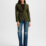 A luxe wardrobe staple you’ll reach for year after year. Expertly tailored for a lean, elongating fit, the Duane is the classic single-breasted blazer, reimagined in soft, velvety suede. A peak lapel, cutaway hem, and flap and welt pockets complete the look. Pair with jeans and boots for a fall-ready look.