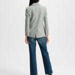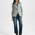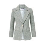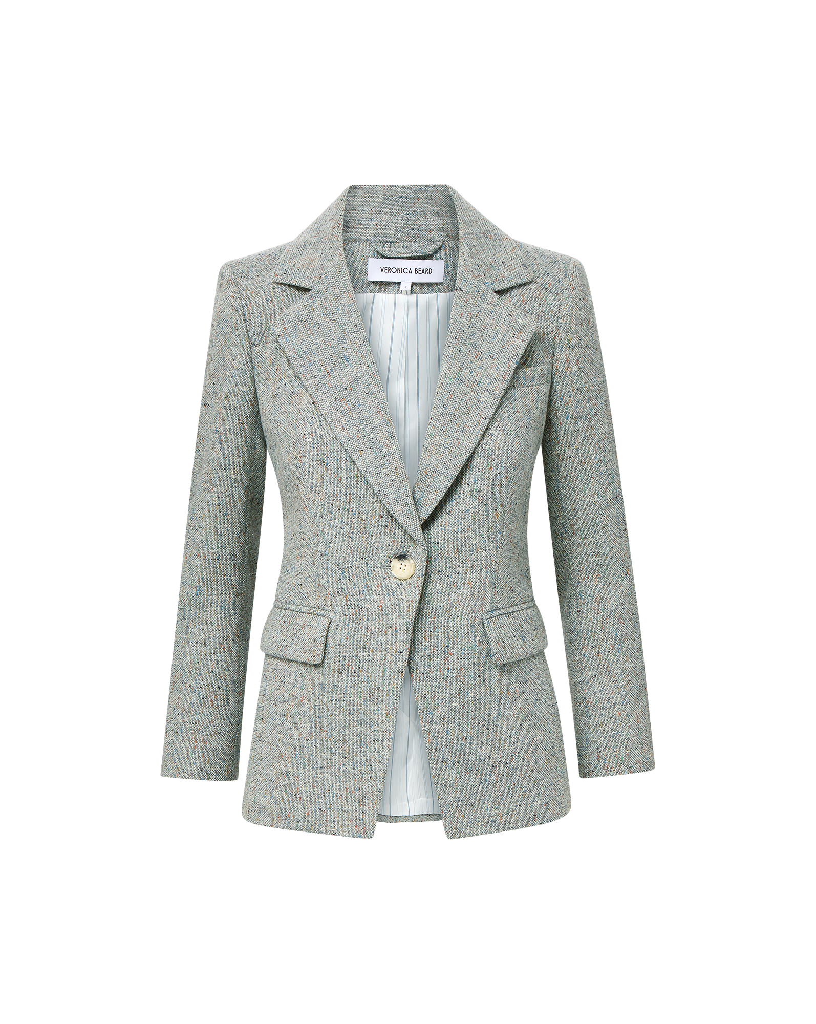 A chic classic. The Healy single-breasted blazer is expertly tailored in a speckled blue Italian wool blend for rich texture and dimension. Flap pockets, marbled buttons, and a notched lapel lend it a timeless appeal. Pair with denim and your favorite boots for a polished look that carries you from desk to drinks.