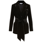 An elevated twist on the classic blazer. Crafted from luxurious black velvet, the Issel jacket features a relaxed, elongated silhouette and a wrap-style tie to cinch and define the waist. A peak lapel, chest welt pocket, and self-covered buttons at the front and sleeves enhance its clean, streamlined appeal. Perfect for event dressing, it pairs with the coordinating Alex pants for a chic tailored set.