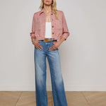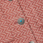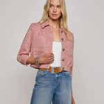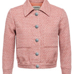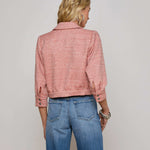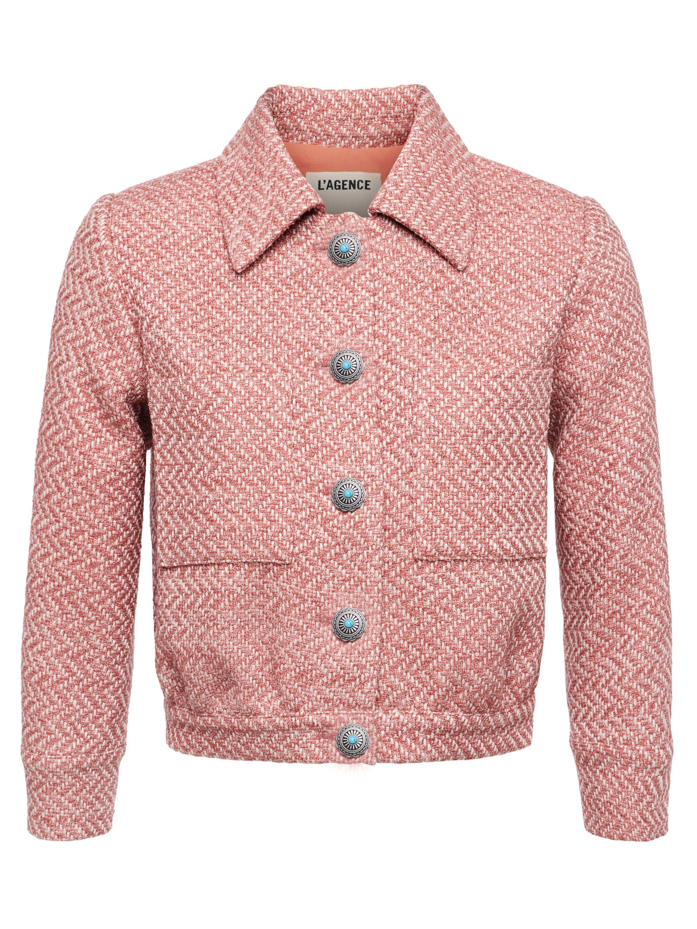 A ladylike, three-quarter sleeve jacket meets a textured chevron tweed. Wear the Jia as a top or second layer.