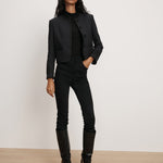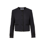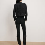 Timeless and meticulously crafted. The Latrell lady jacket is defined by its clean, collarless silhouette and cropped, structured fit. Intricate embroidery along the back and sleeves creates rich texture and dimension, while looped braided trim, covered buttons, and welt pockets offer a refined finish. Style it with denim for daytime chic or layer it over a slip dress for an evening out.