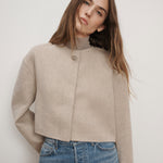 A modern take on the classic lady jacket. Crafted from a premium wool blend, the Philips features a cropped, collarless silhouette and a boxy fit that feels both refined and effortlessly cool. Finished with a single row of tortoiseshell buttons, it’s the perfect layer to throw over your favorite turtleneck sweaters and mock-neck mini dresses.