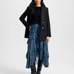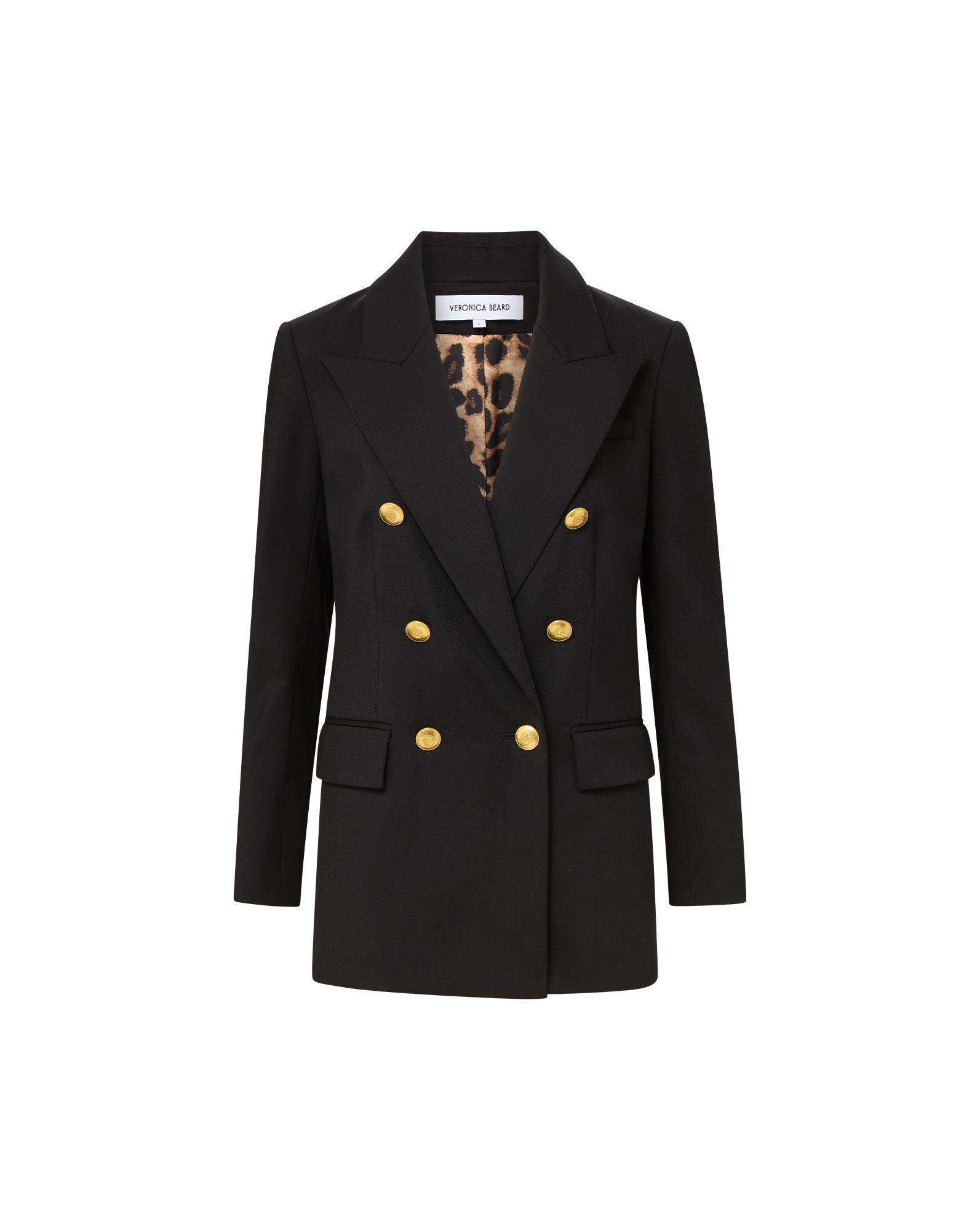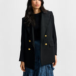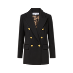 A classic blazer—updated with modern proportions. Crafted from a premium Italian stretch-wool blend, the Rhys is impeccably tailored for a relaxed, oversized fit and elongated silhouette. An exaggerated peak lapel and double-breasted closure with our signature crest buttons complete the look. Compatible with any of our dickeys, this jacket is endlessly versatile—pair with black trousers for a polished set or dress it down with denim.