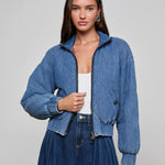 Cool and effortless, the Ryah puffer bomber jacket is crafted from lightweight denim with quilted stitching for a modern update on the classic. Throw it over feminine dresses for unexpected edge.