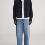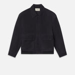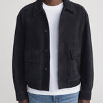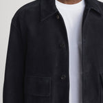 Crafted from 100% suede with a refined matte texture, this jacket features a button-front closure, flap patch pockets, and ribbed trim at the hem.