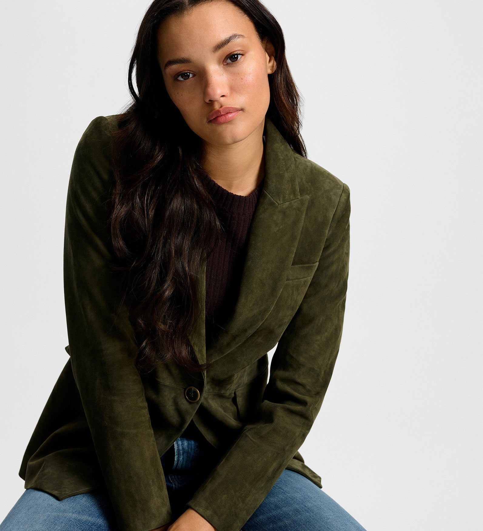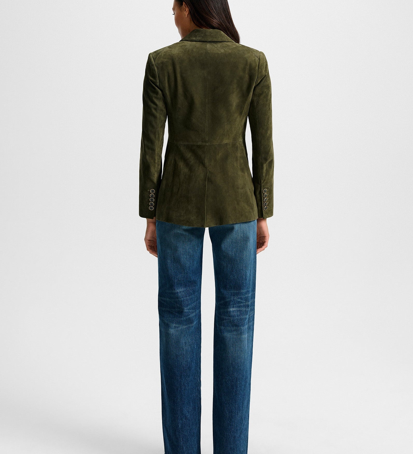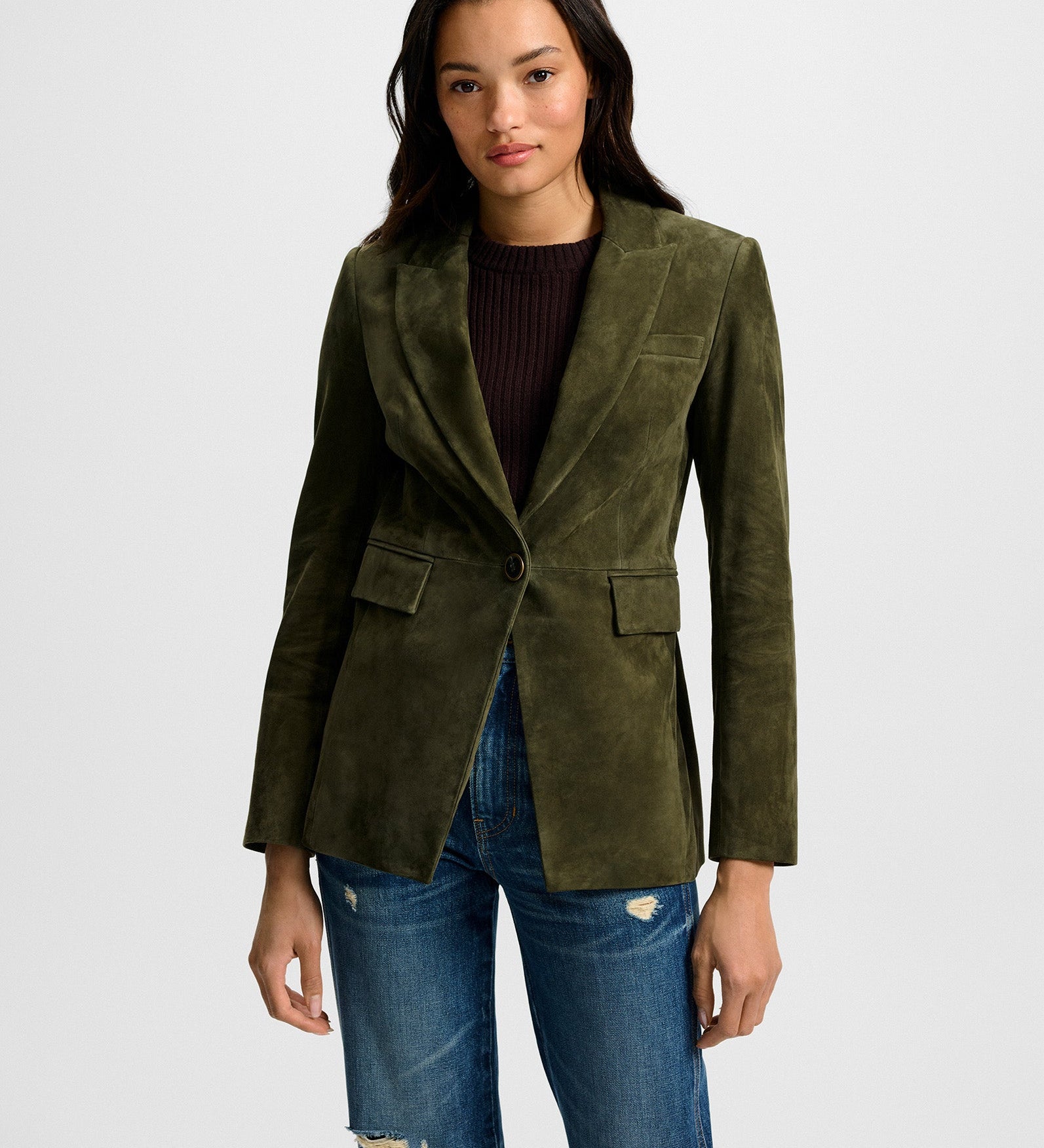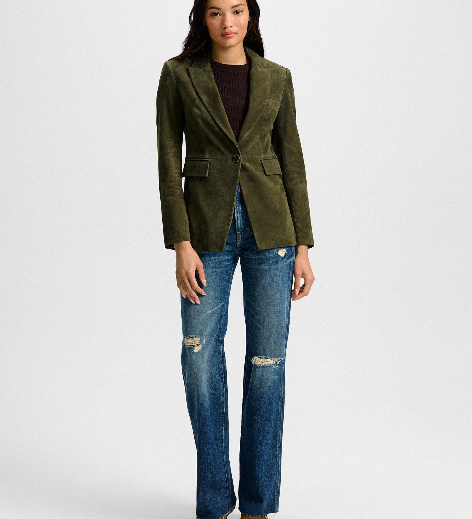 FRAME - The Peak Lapel Leather Blazer -- Black