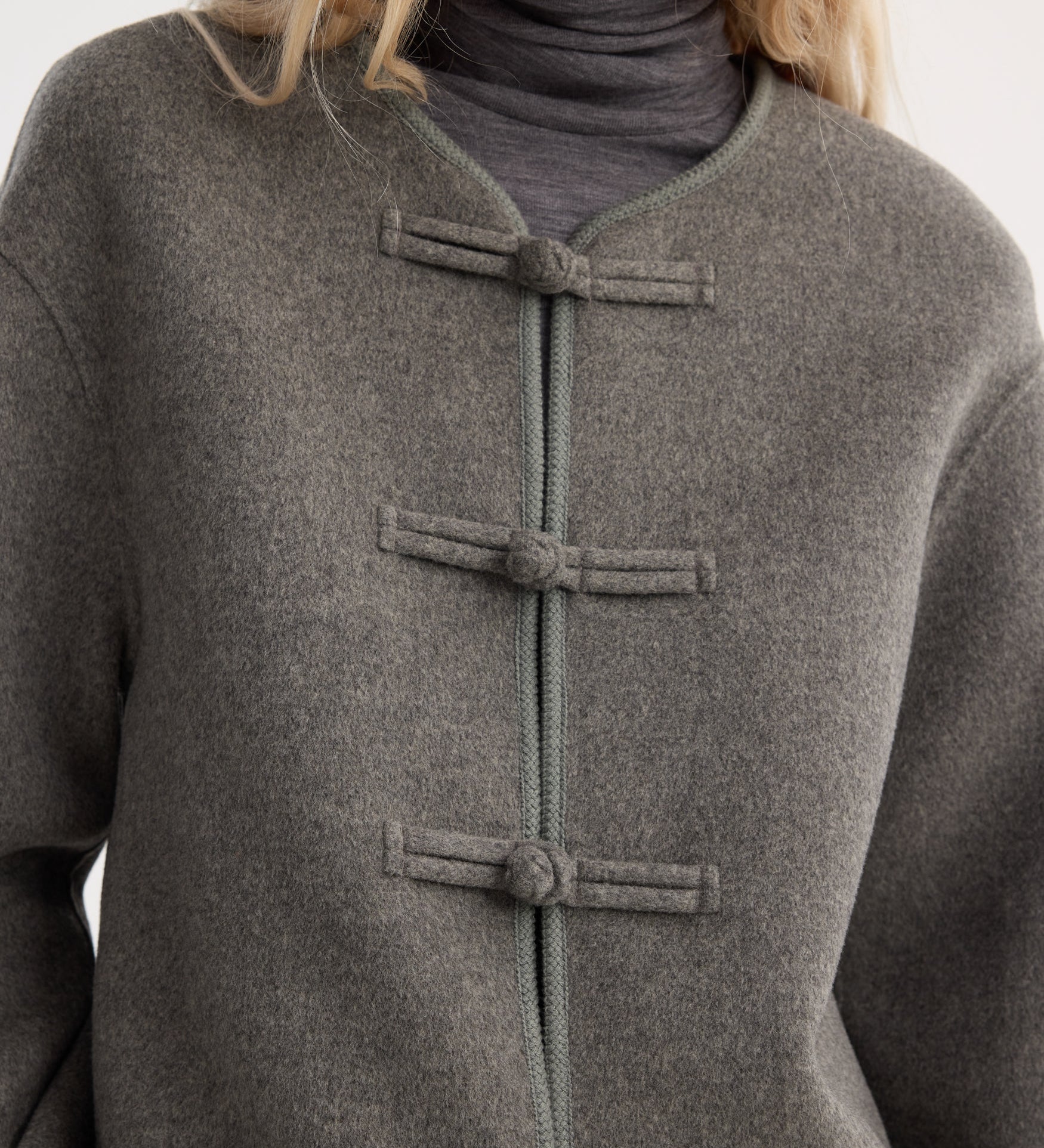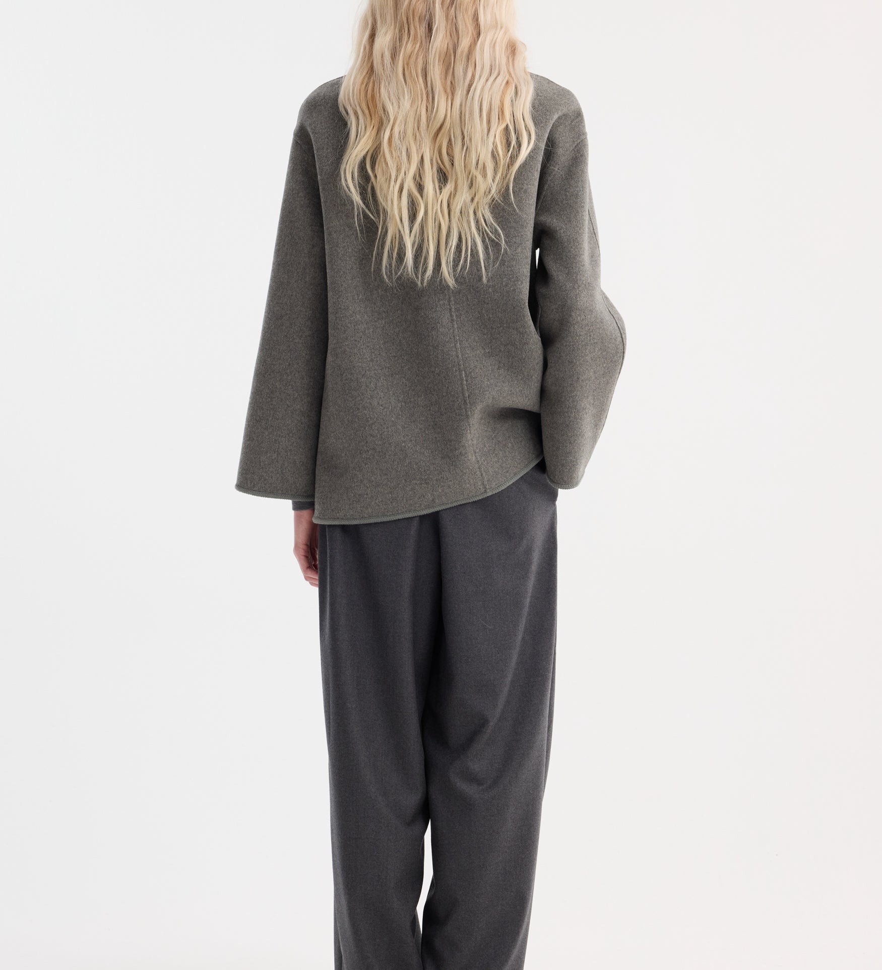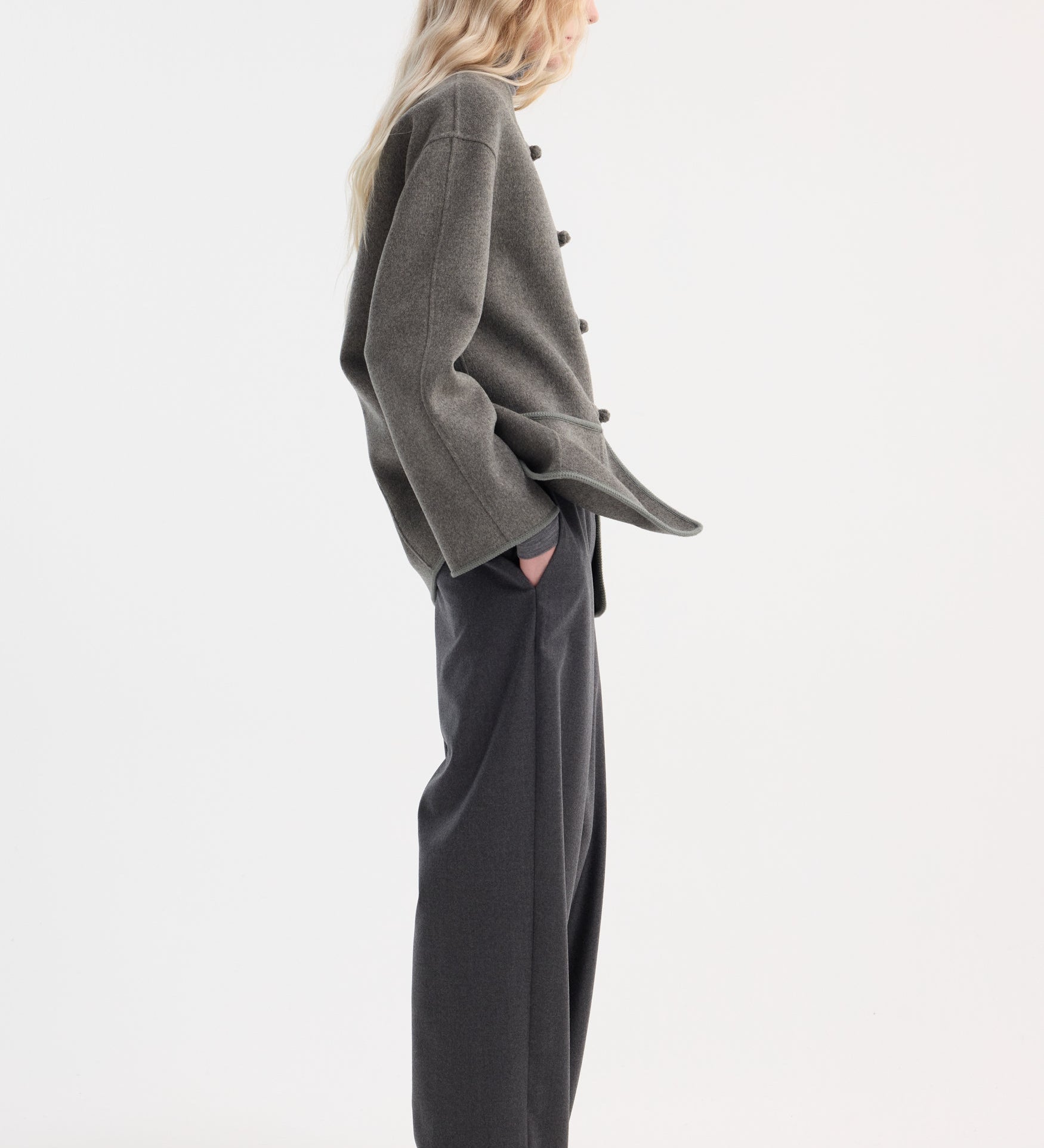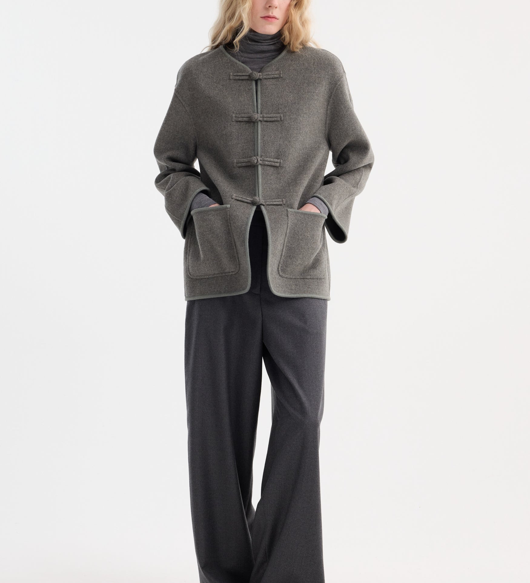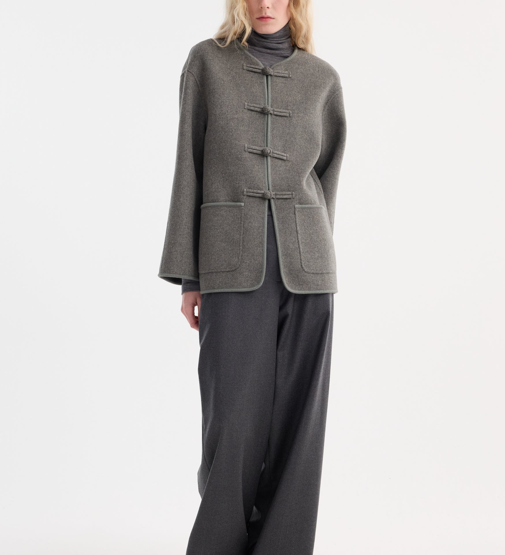 ROHE - Mandarin double-faced wool jacket | mid grey melange
