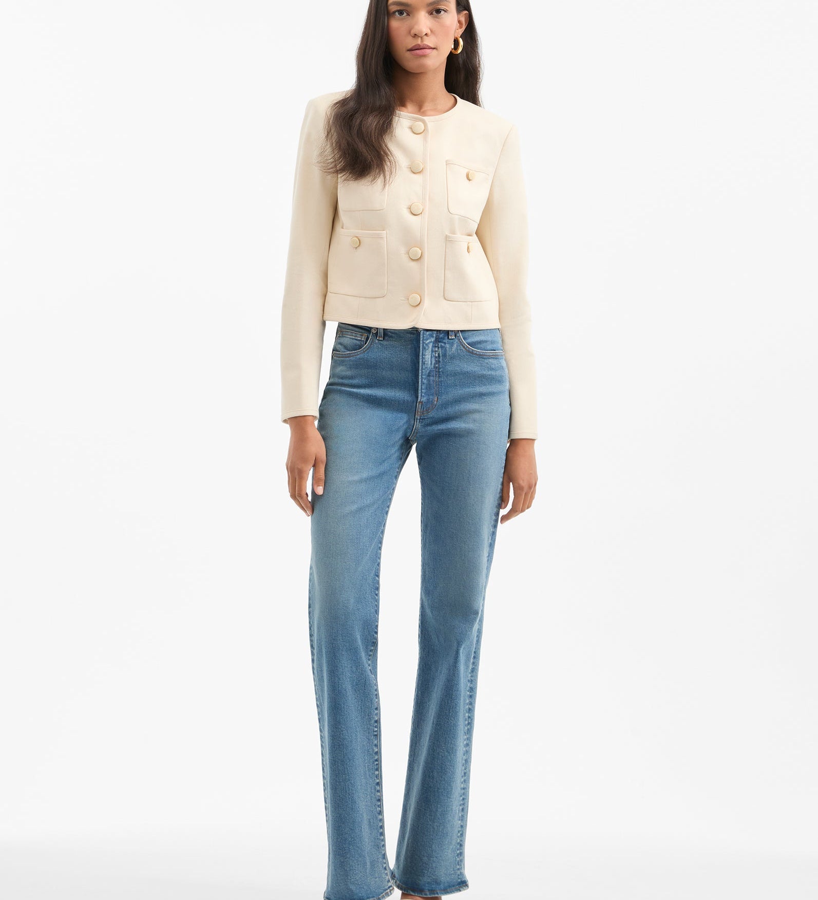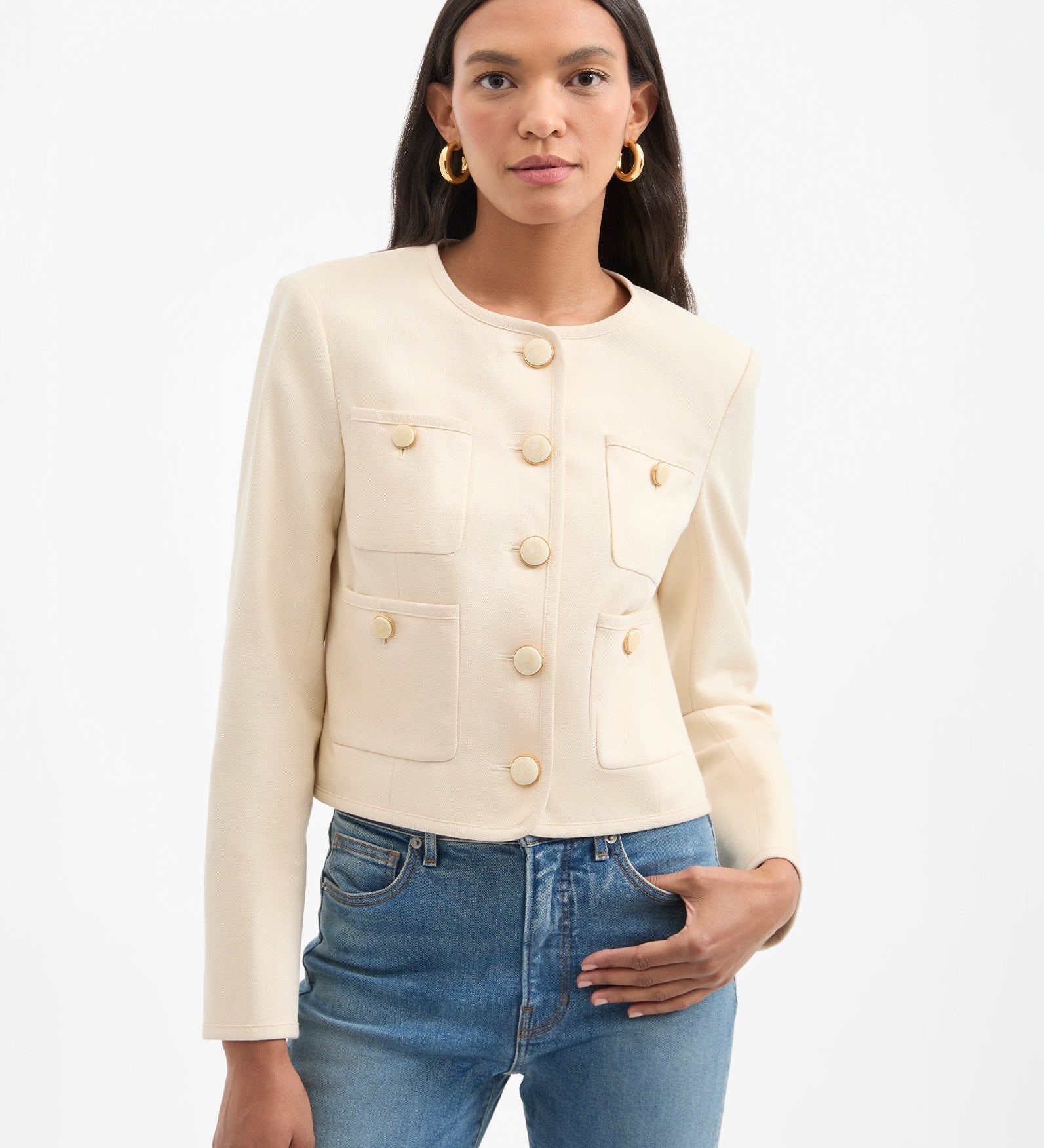 FRAME - The Trim Jacket -- Cream Multi