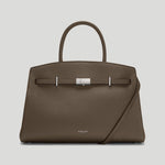 The Midi Hudson is a compact version of our bestselling style designed to empower, crafted to last. Featuring our signature belted strap and silver-plated lock, it's handmade with luxurious artisanal details. Sleek, with plenty of space for essentials, it's an elevated choice for moments on the go. The central leather flap with a magnetic closure keeps belongings secure, while a rear slip pocket provides quick access to essentials. With expandable side panels for extra space when needed, it offers versatility in every moment whether worn handheld, on the crook of the arm, or crossbody with its adjustable strap. Ethically produced from sustainably sourced, LWG gold-rated Italian leather, The Midi Hudson blends timeless style with contemporary refinement.