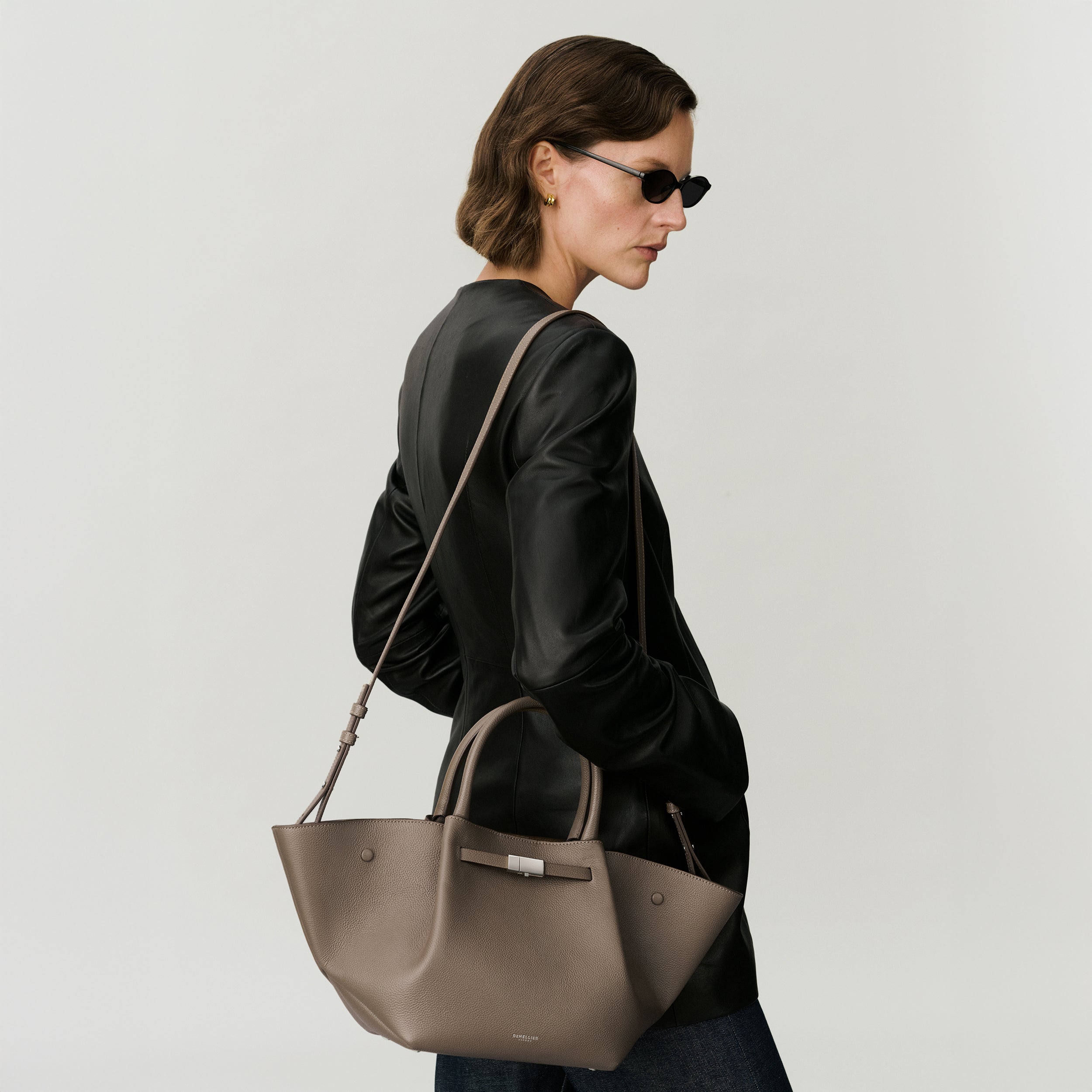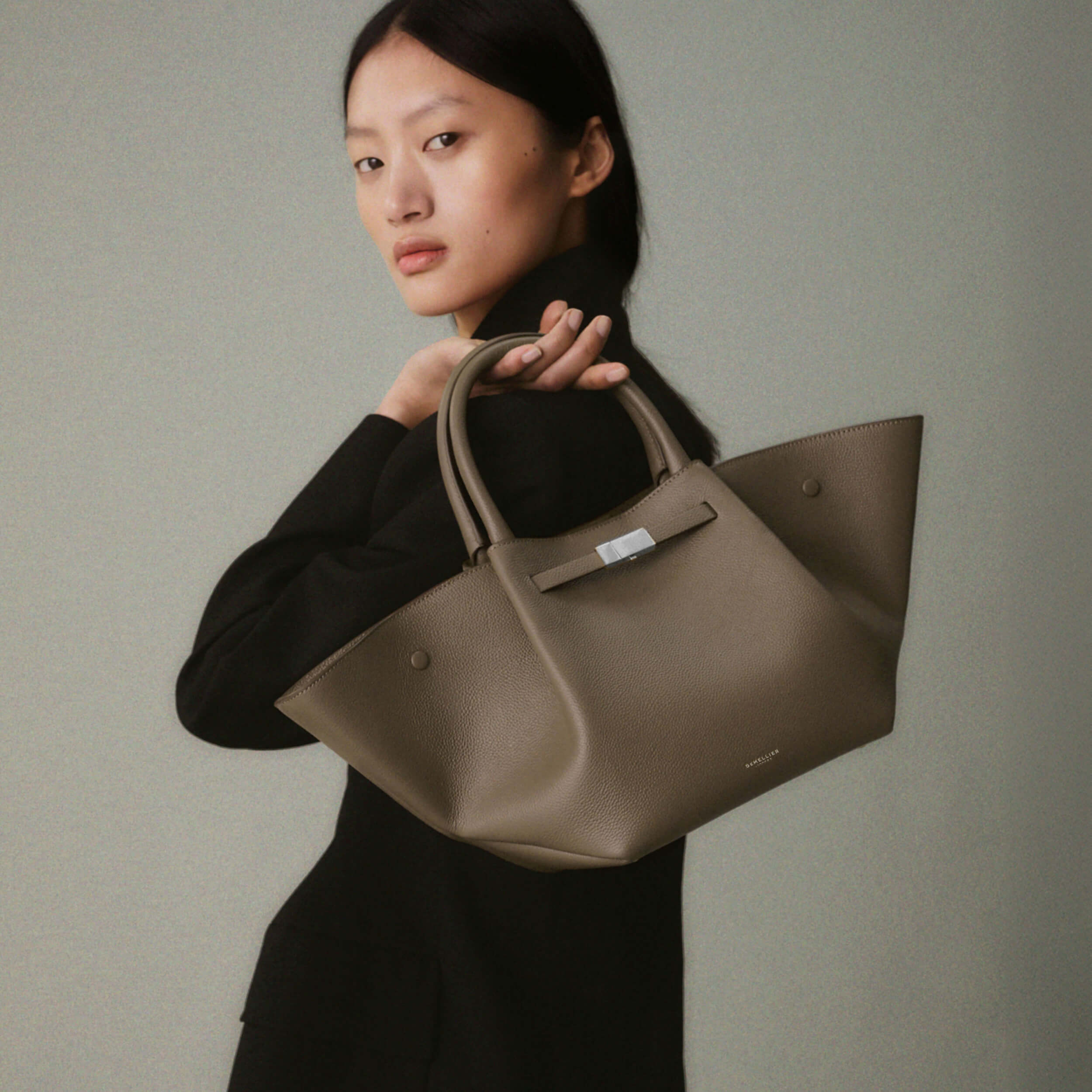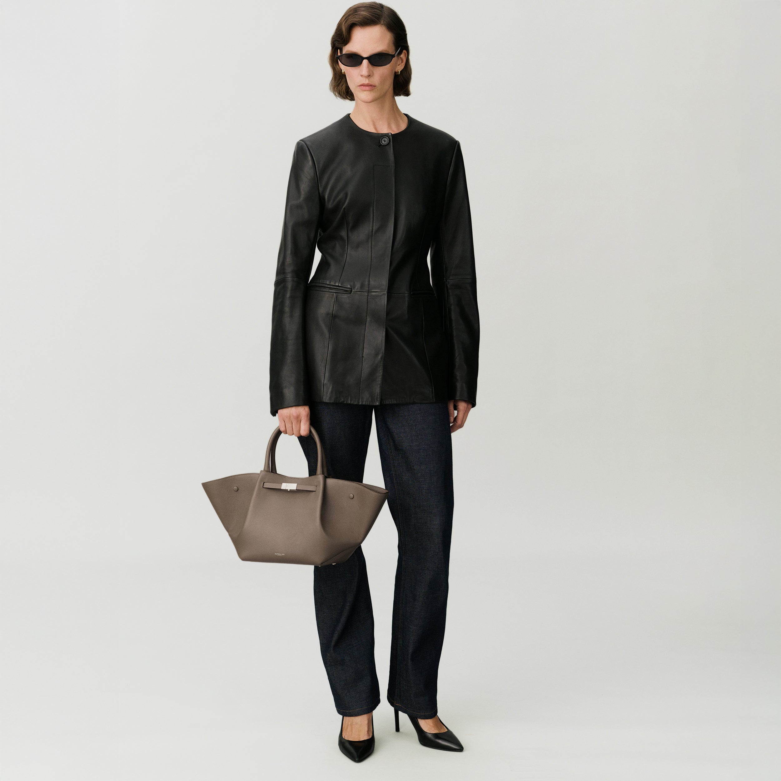 The Midi New York was inspired by our love for this amazing city, its energy, architecture and people. Its modern yet timeless silhouette and subtle luxury finish makes it the perfect day bag. The interior can be safely closed off with a central internal magnet. The comfortable tubular handles sit nicely in the crook of your elbow or can be held by hand. The base is constructed with triangular folds on each side and enhanced with metal feet. This bag is the perfect size to carry all essentials.