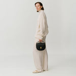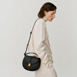 Refined versatility for the modern lifestyle. Softly curved, the silhouette is accentuated by exquisitely crafted leather detailing for a touch of femininity, finished with a brushed gold-plated magnetic padlock closure. Designed to effortlessly adapt to every occasion, the top handle and adjustable strap are both detachable, carry it handheld for a refined look or crossbody to go hands-free. Committed to exceptional craft, each piece is handmade using sustainably sourced LWG gold-rated Italian leather. With a sleek profile and a practical front pocket, it's the ideal style for life on the go.