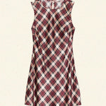 A favorite of our co-founder, Katherine, our Alamere Dress returns in lustrous silk satin in our ‘30s-inspired Norfolk Plaid. The Alamere is a sleeveless style with a crew neckline, easy fit, and bias-cut mini hemline. A single button with a keyhole detail fastens at the back of the neck.