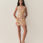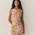 Crafted from an intricate floral silk georgette, the ‘90s-inspired Alamere Dress—a favorite of our co-founder, Katherine— is a sleeveless style with a crew neckline, an easy fit, and a bias-cut mini hemline. A single button with a keyhole detail fastens at the back of the neck.