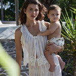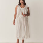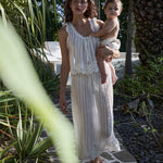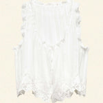 Crafted from a lightweight ramie, the Amal draws inspiration from our beloved Traveler Top, featuring a slightly cropped silhouette, mother-of-pearl buttons, and a scoop neckline with a fixed grosgrain ribbon tie. Intricate Victorian-inspired floral lace and ladder trims adorn the sleeve openings and hemline.