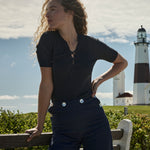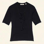 In a stretchy, lightweight linen blend with allover ribbing, the Auguste Top features a fitted silhouette and elbow-length sleeves detailed with delicate pointelle. The plunging V-neckline laced with a tie allows you to cinch as much as you’d like.