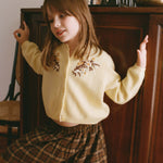 A sweet knit for littles in 100% cashmere, our Babette Cardigan takes inspiration from ‘50s embroidered cardigans. It features a classic crew neck, raglan full-length sleeves, and delicate hand-stitched floral embroidery accented with beads and sequins. Ribbing lends texture to the collar, hem, and cuffs, while a line of buttons extends down the front. Made with responsibly sourced, traceable cashmere following strict animal welfare, environmental, and social guidelines. Learn more about our commitment to traceability in our 2024 Impact Update.