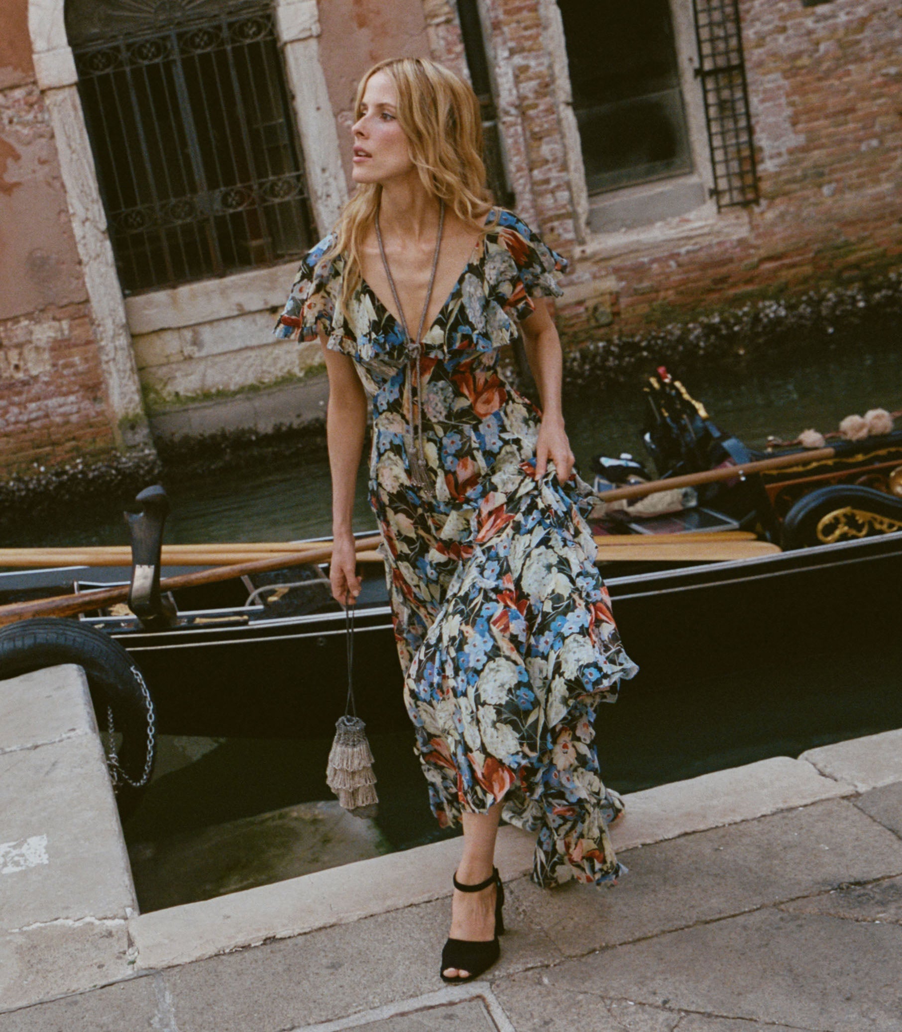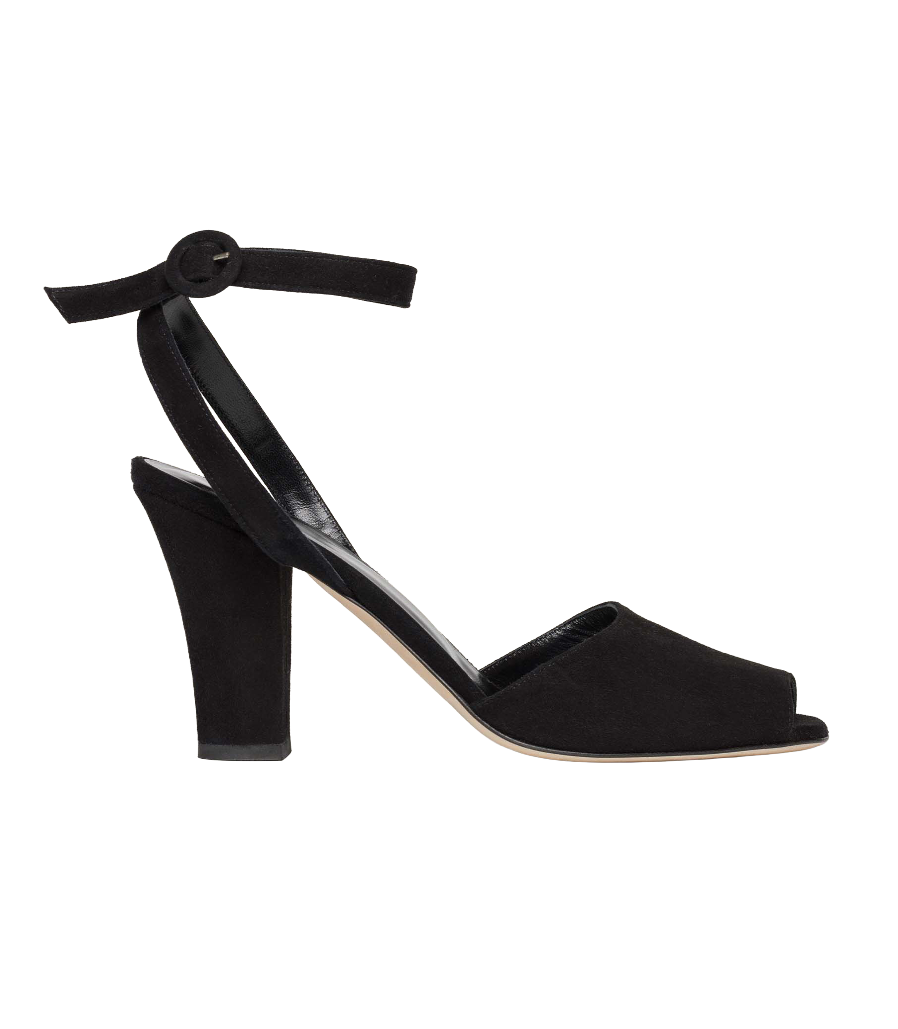 Drawing inspiration from 1970s disco styles, the Carla Heel is handcrafted in Italy from soft suede. Designed with a block heel and peep toe, it fastens at the ankle with a slender strap and a petite, suede-wrapped buckle.