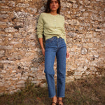The cropped version of our beloved Diana Jean, now in organic cotton denim with a hint of stretch. It features a slightly shorter rise and inseam than the original Diana, with a high waist, straight leg, and classic denim detailing: button fly, pointed back pockets, and front pockets.
