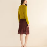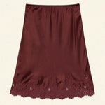 A slightly shorter take on our beloved Elowena, the Elowette Skirt is a bias-cut, midi-length skirt in buttery silk satin, finished with delicate scalloped elastic at the high waist and floral lace along the hem.