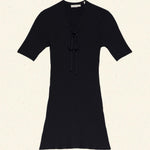 In a stretchy, lightweight linen blend with allover ribbing, the Faybelle Dress is a fitted mini dress with short sleeves detailed with delicate pointelle. The plunging V-neckline is laced with a tie, allowing you to cinch as much as you’d like.