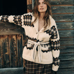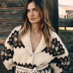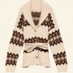 Nodding to alpine sweaters of the 1970s, the DÔEN Heirloom Griffith Cardigan is handknit from a cozy baby alpaca-wool blend. The slouchy silhouette features a shawl collar and faux horn buttons, finished with a detachable crochet belt for styling versatility.
