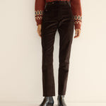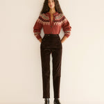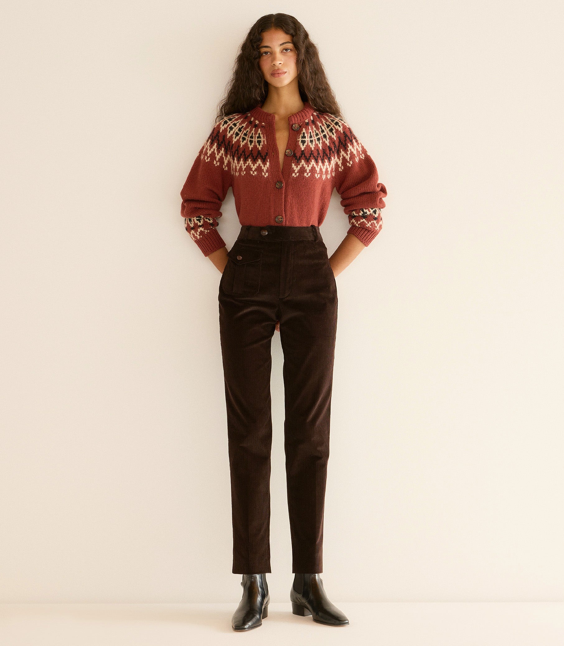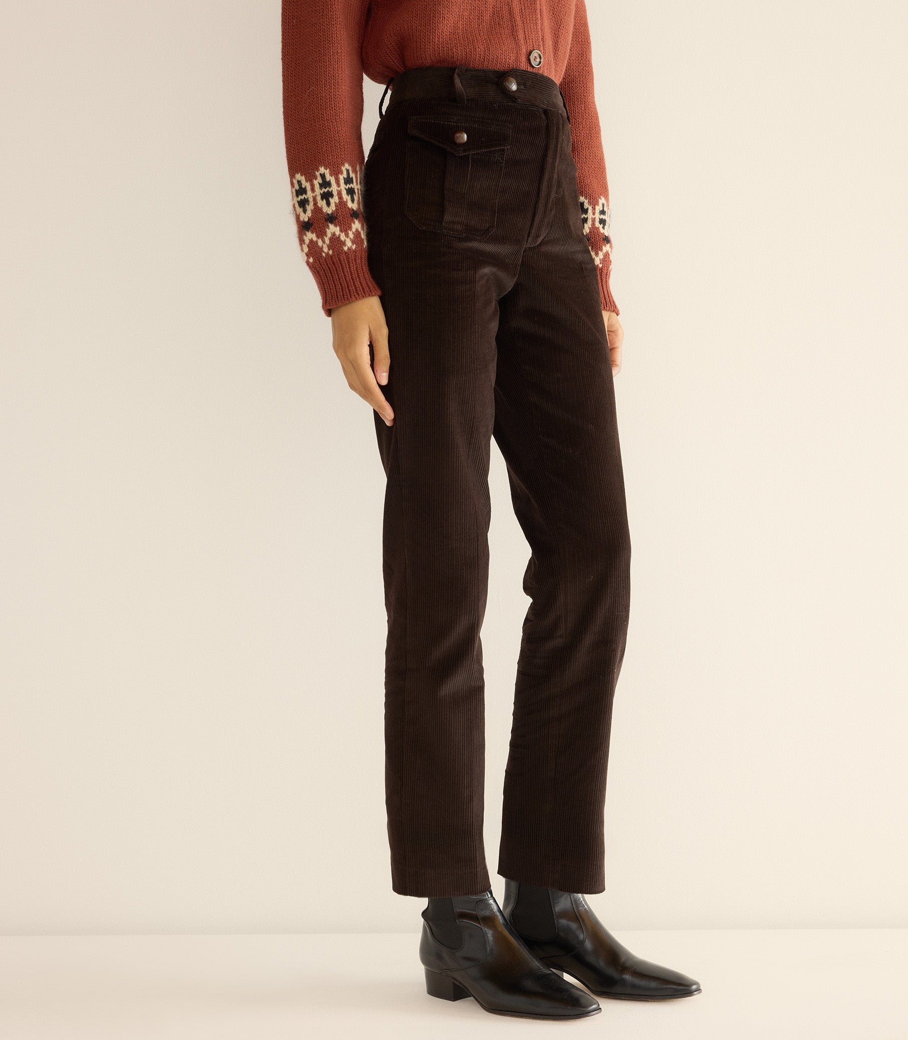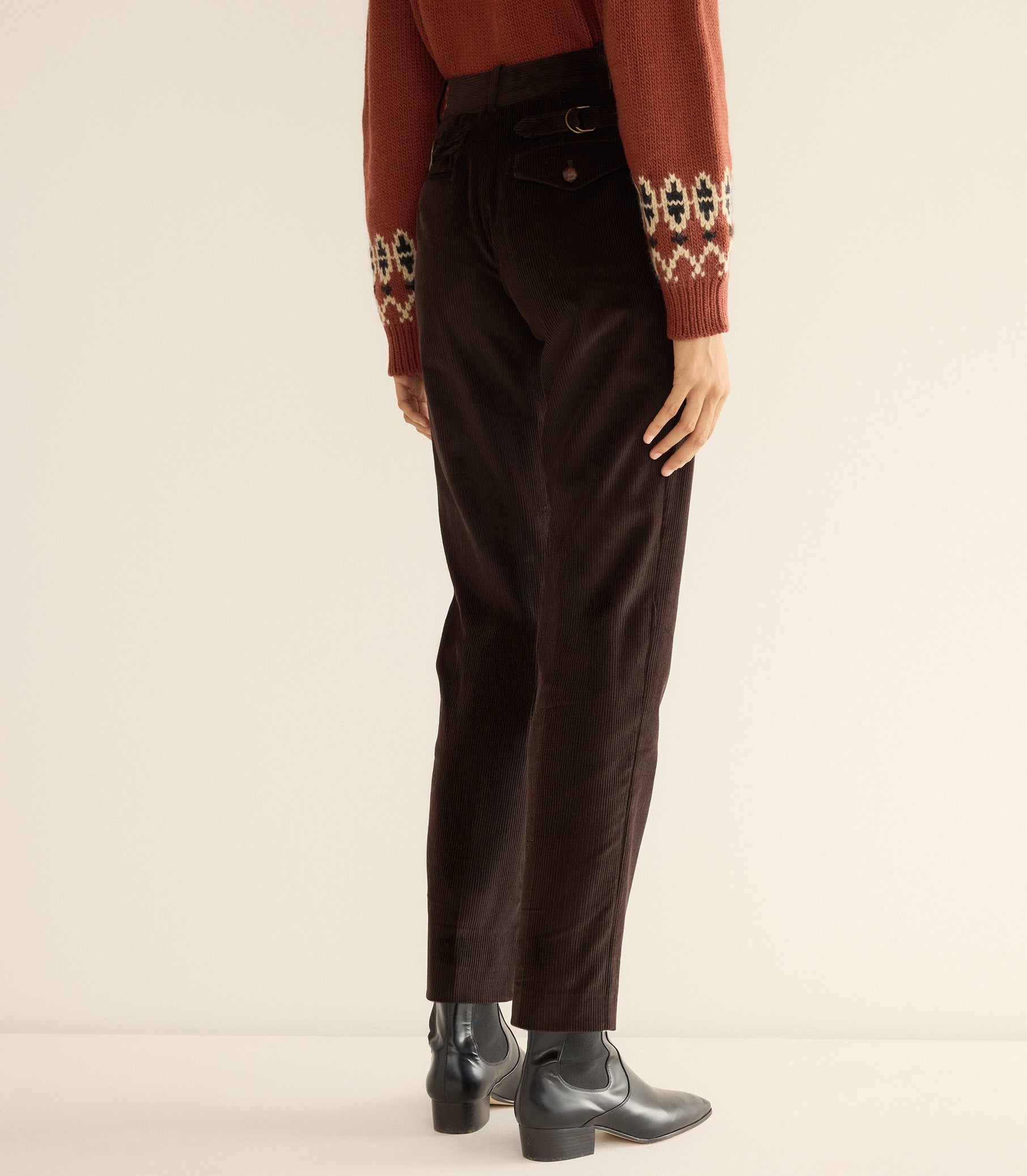 Crafted from slightly stretchy, fine-wale cotton corduroy, the Hartfield Pant—a favorite of our co-founder, Katherine—takes inspiration from vintage equestrian pants. This season, the Hartfield is reimagined in a new corduroy with a slightly longer inseam for a true ankle-length fit. Designed with a high waist, braided leather button and zipper closure, and a tapered leg, it’s finished with buckle details at the back, a single front pocket, and two back welt pockets.