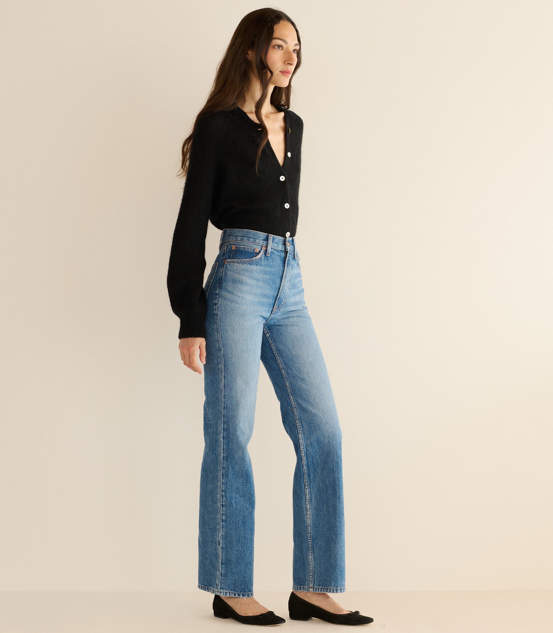 Crafted from 100% organic cotton denim, the Laurent Jean is inspired by slim-fit styles from the 1970s. It features a high rise, elongated straight leg, pointed back pockets, classic front pockets, and a button-and-zipper closure. Explore our Denim Guide to find your perfect fit.
