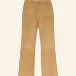 For Fall, we’ve introduced a suede iteration of our beloved Maritime Jean. Crafted from supple goat suede from a certified responsible tannery, the DÔEN Heirloom Leah Suede Pant—an extra-special style favored by our co-founder, Katherine—features a high waist with a button and zipper closure, a sailor leg, two front patch pockets, and two back pockets.