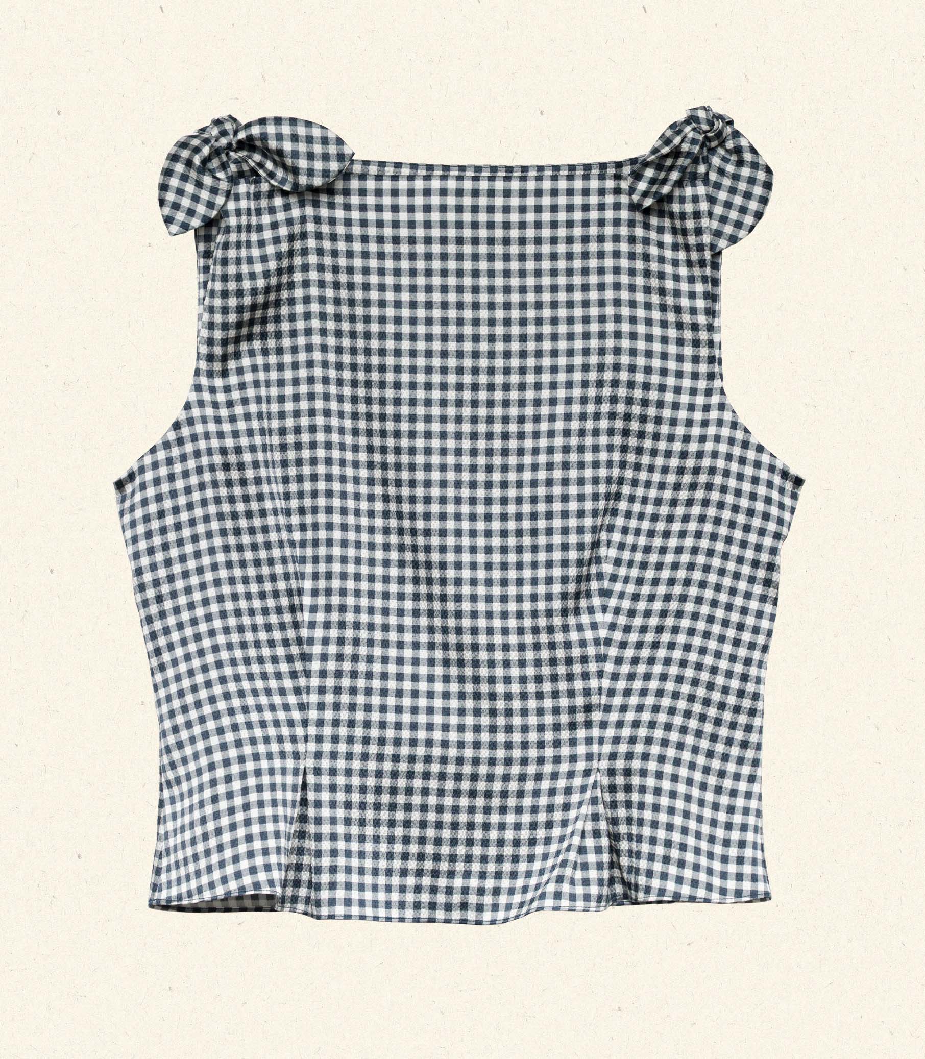 DÔEN - LIRIEL TOP -- NAVY VALENCIA GINGHAM