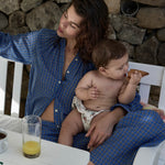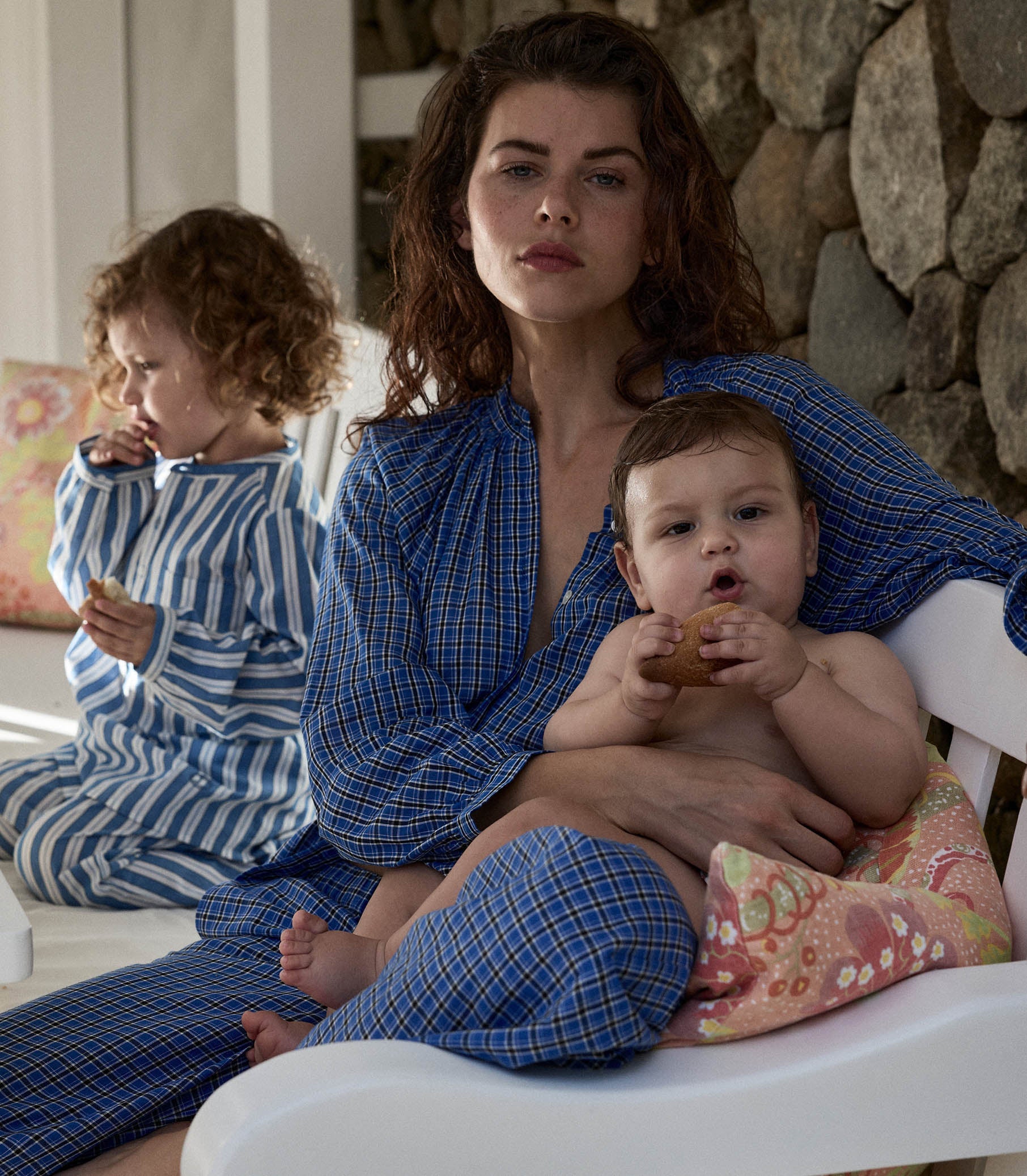 Tailored in a crisp organic cotton poplin and rendered in our workwear-inspired Cassis Check, the Morgan Pant takes cues from vintage sleepwear, featuring a hidden drawstring and an elastic waistband.