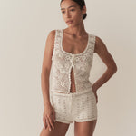 Hand-crocheted in Peru, the DÔEN Heirloom Noelle Short draws inspiration from the mini shorts of the late 1960s folk music scene. Featuring an allover crochet pointelle design, the Noelle is finished with an adjustable drawstring at the waist for an easy fit.