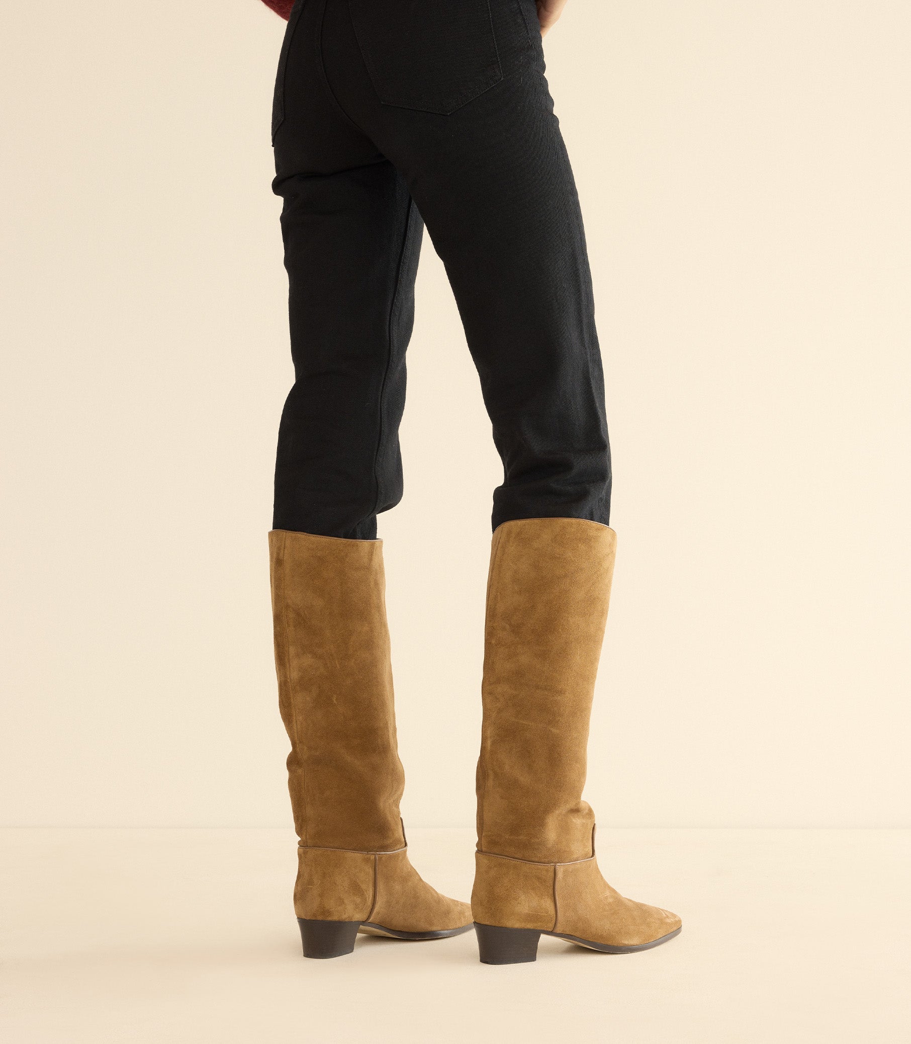 Inspired by classic equestrian style, the Riviera Boot is handcrafted in Italy from suede sourced from a certified responsible tannery. Designed to soften and slouch beautifully over time, it features a knee-high shaft, almond-shaped toe, and low stacked heel.
