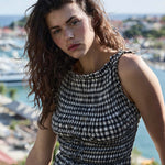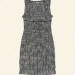 Crafted from a soft, lightweight organic cotton voile adorned with our ‘50s-inspired Noir Greta Gingham, the Rosella Dress is an easy-wearing pullover style. It features allover elasticized smocking, a bateau neckline, and a fitted silhouette that finishes just above the knee, with a ruffle at the hem. Functional self-ties at the waistline allow you to adjust for the perfect fit.
