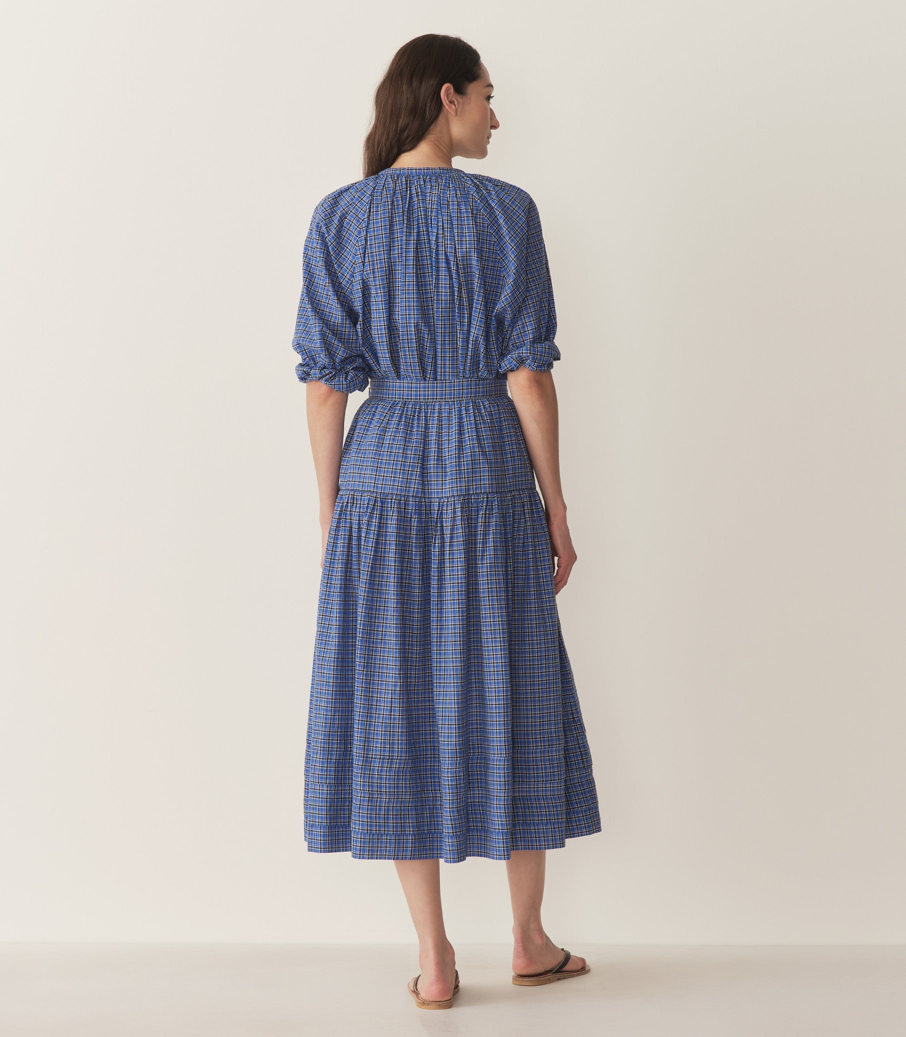 In a midweight organic cotton voile, the Sebastiane Skirt—a forever favorite of our styling team—returns in a vintage workwear-inspired Cassis Check. This easy-wearing A-line style is sure to become a closet classic, featuring a high waist with an invisible side zipper, tiered pintucks, and an ankle-grazing hemline.