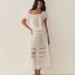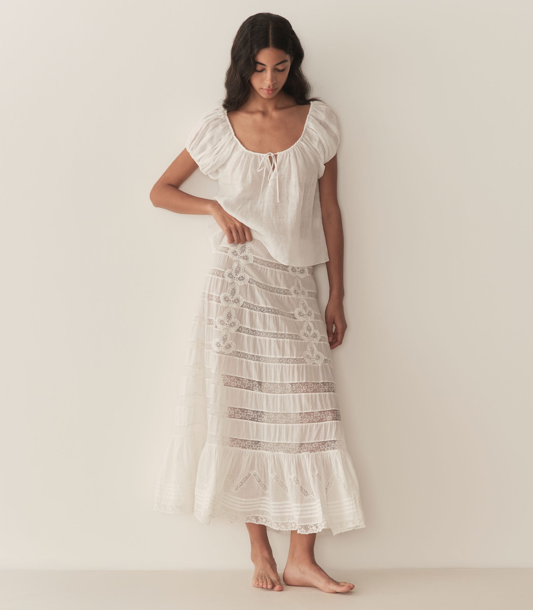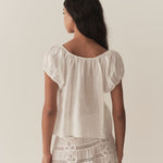 The Solina Top is crafted from lightweight ramie, featuring a breezy silhouette, short puffed sleeves, and a scoop neckline with an adjustable tie and playful keyhole detail.