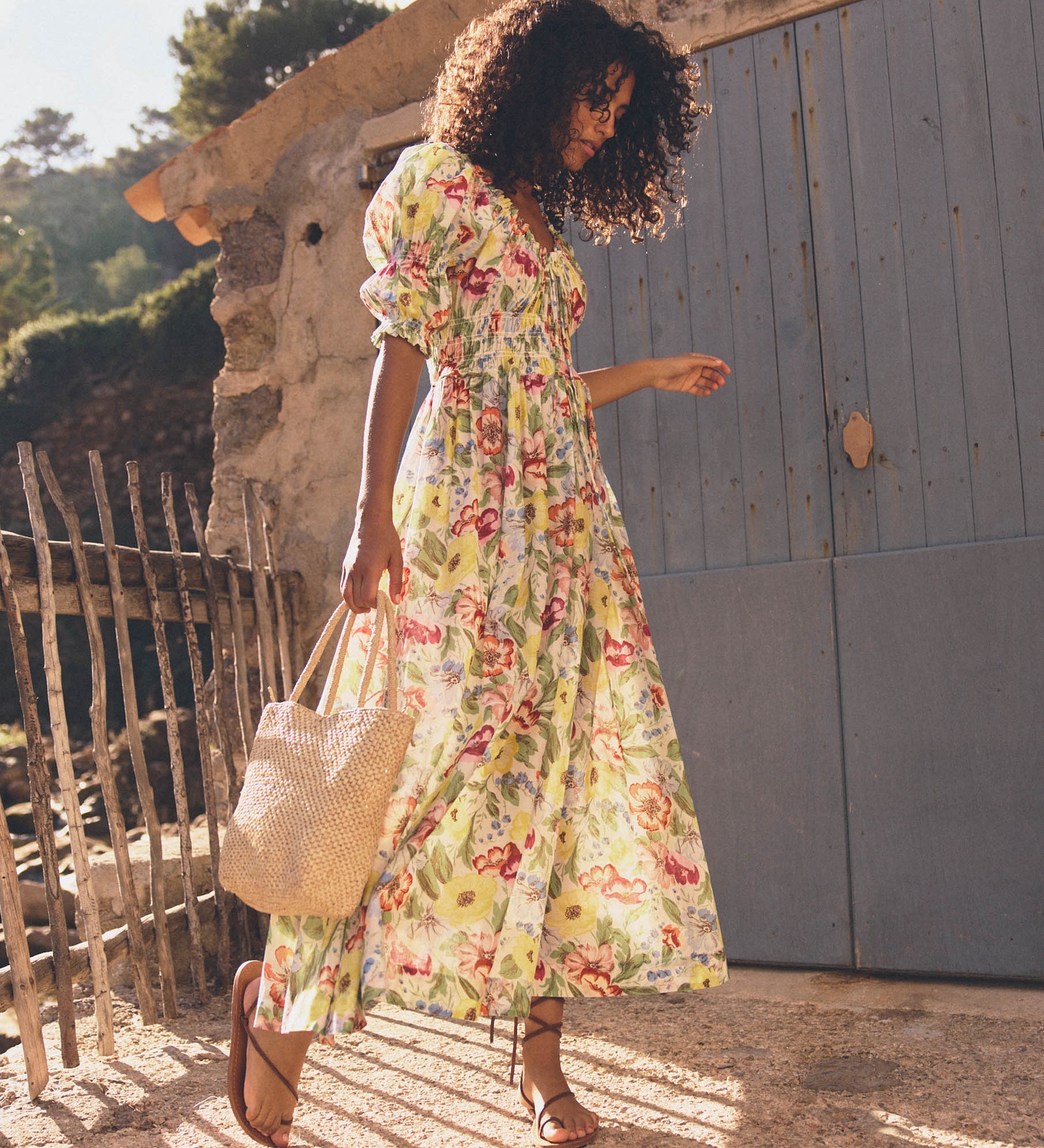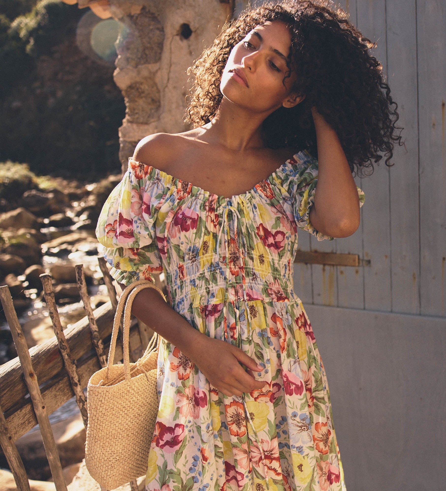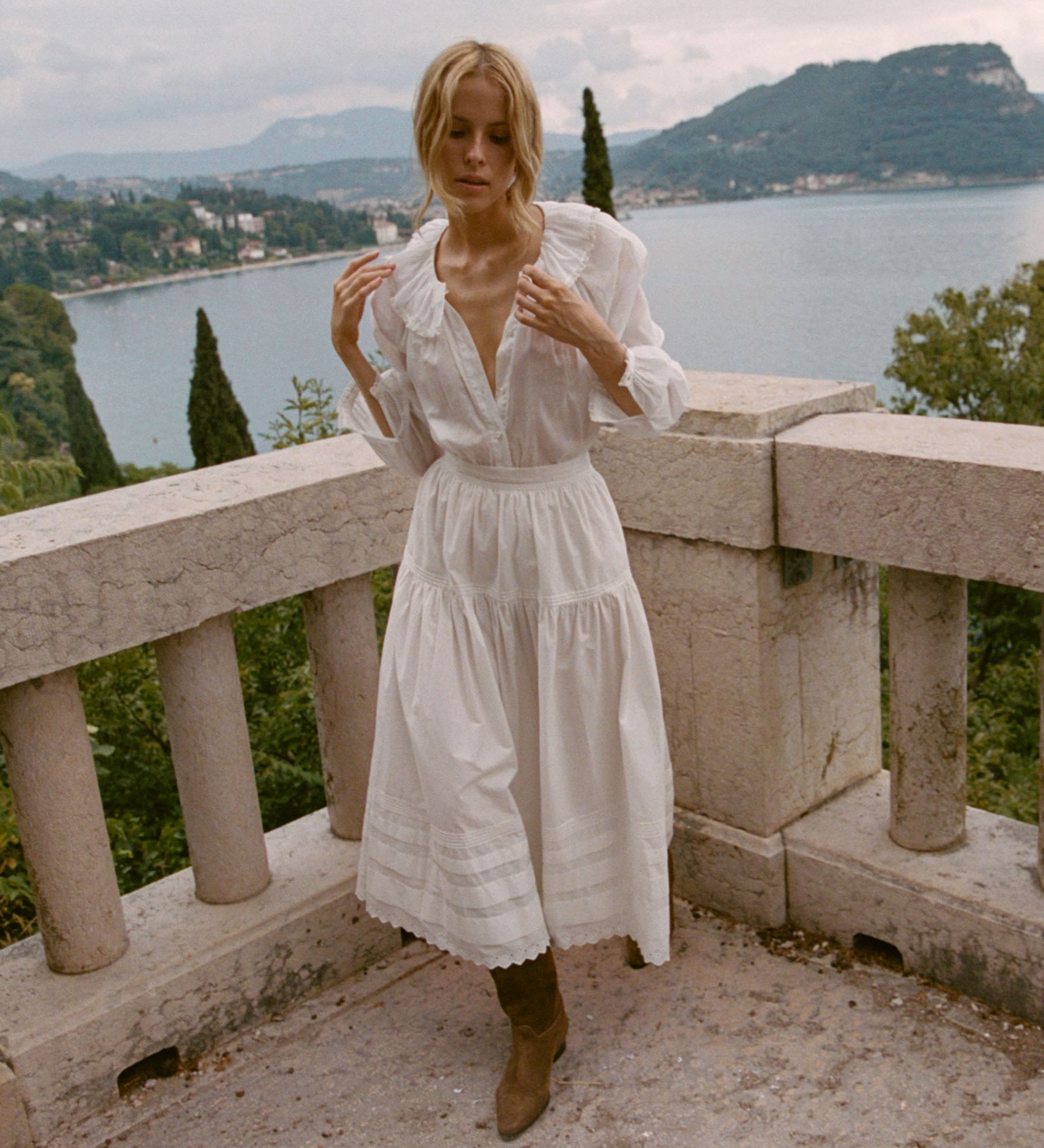 Wearing DÔEN isn’t just about dressing, it’s about inhabiting a feeling. Like waking up in a sunlit room you forgot you loved. The shirred blouses, the gauzy skirts, the prints that feel like stories from your grandmother’s photo album. Everything speaks in a quiet, golden tone.