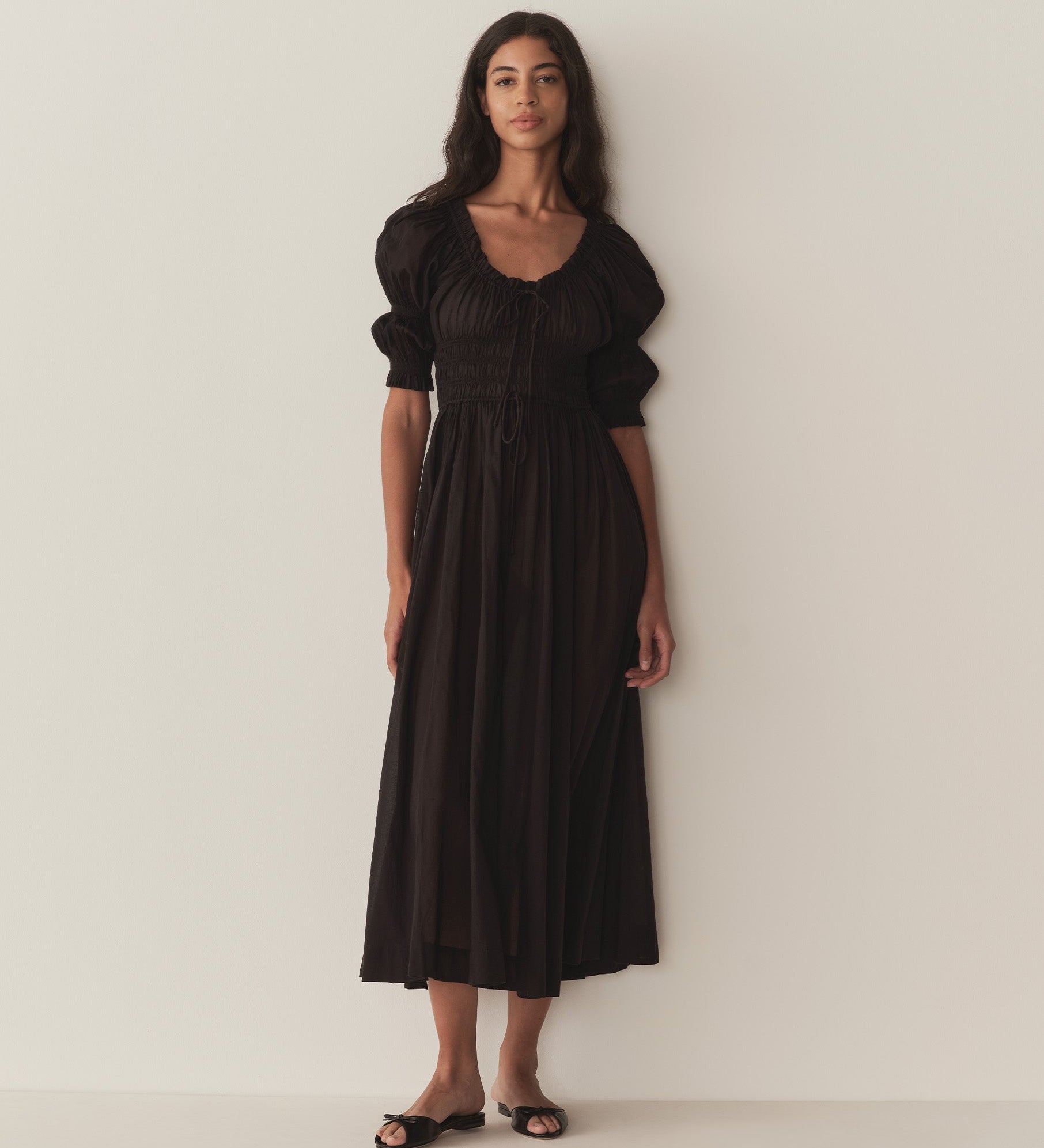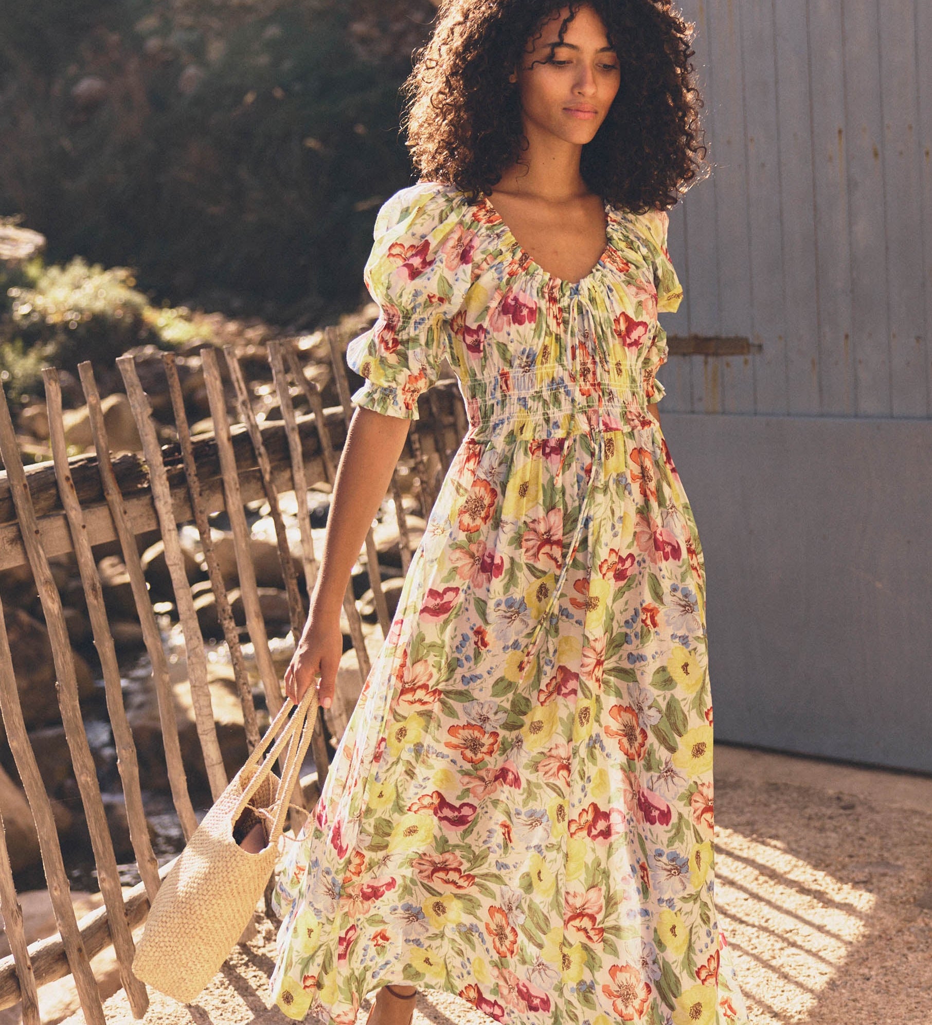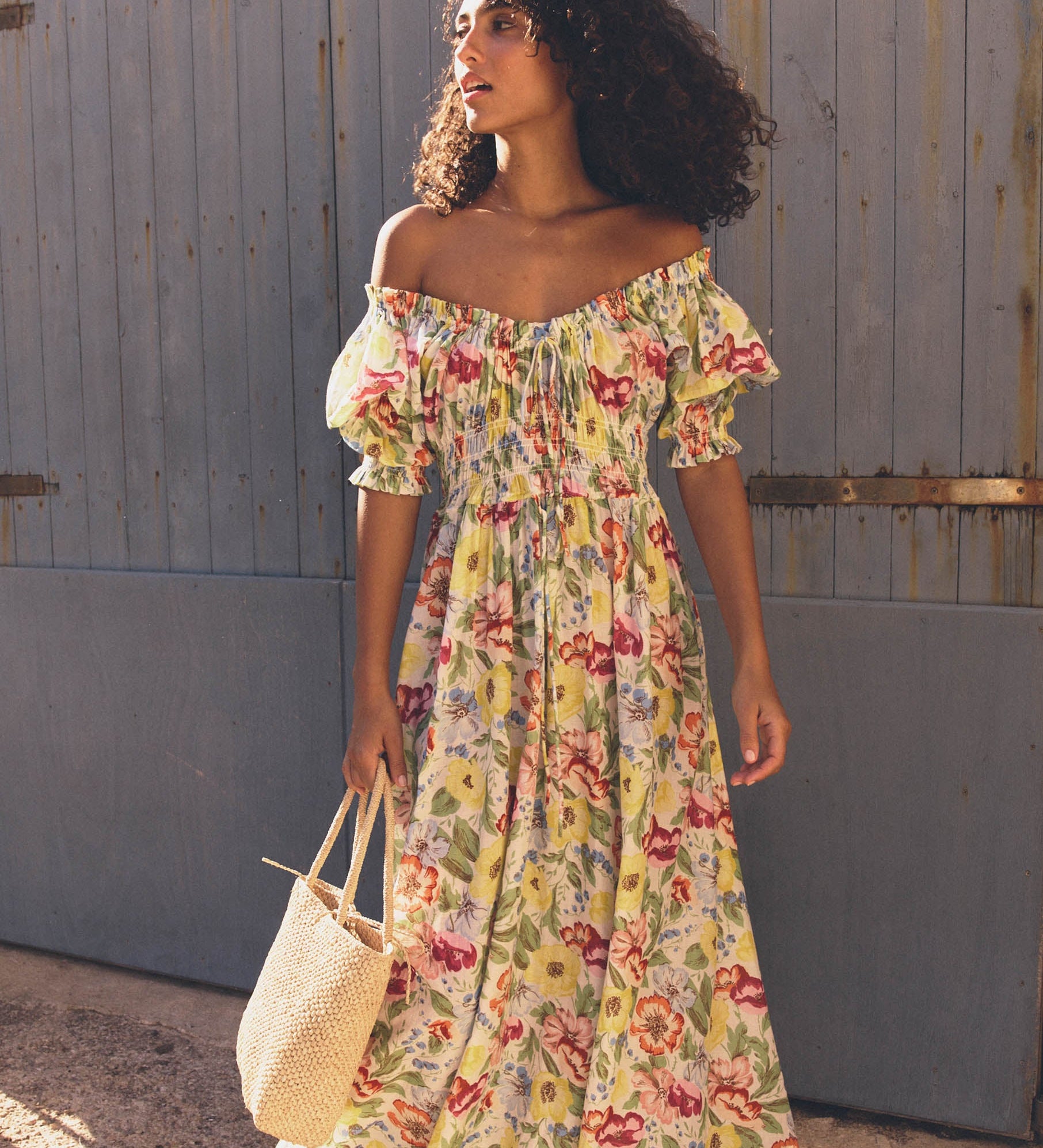 Wearing DÔEN isn’t just about dressing, it’s about inhabiting a feeling. Like waking up in a sunlit room you forgot you loved. The shirred blouses, the gauzy skirts, the prints that feel like stories from your grandmother’s photo album. Everything speaks in a quiet, golden tone.